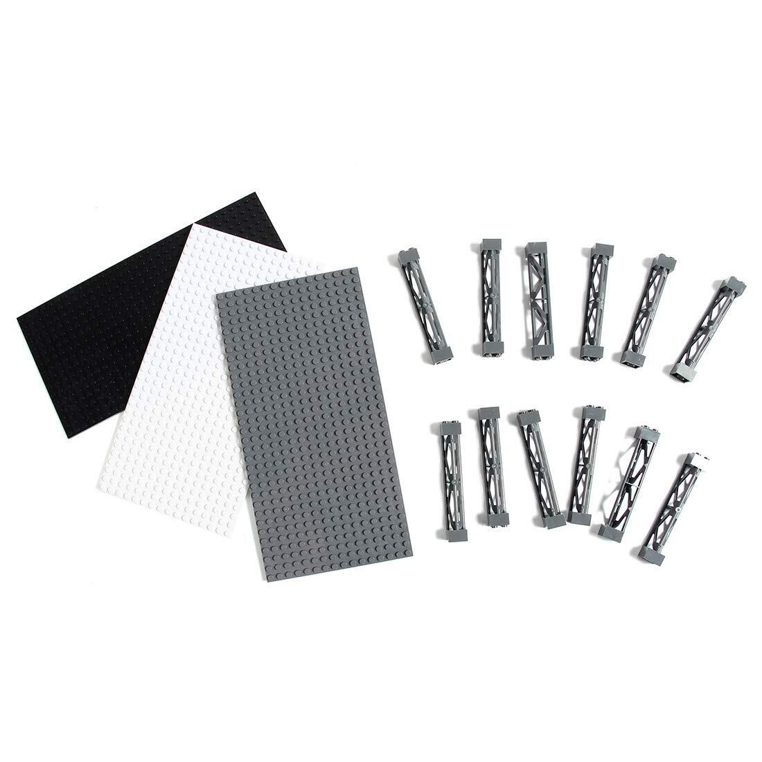 INIBUD 基礎板 ブロック プレート クラシック 互換性 16×32ポッチ 両面 柱付き 板3枚 柱12本 セット (ホワイト、グレー、ブラック)