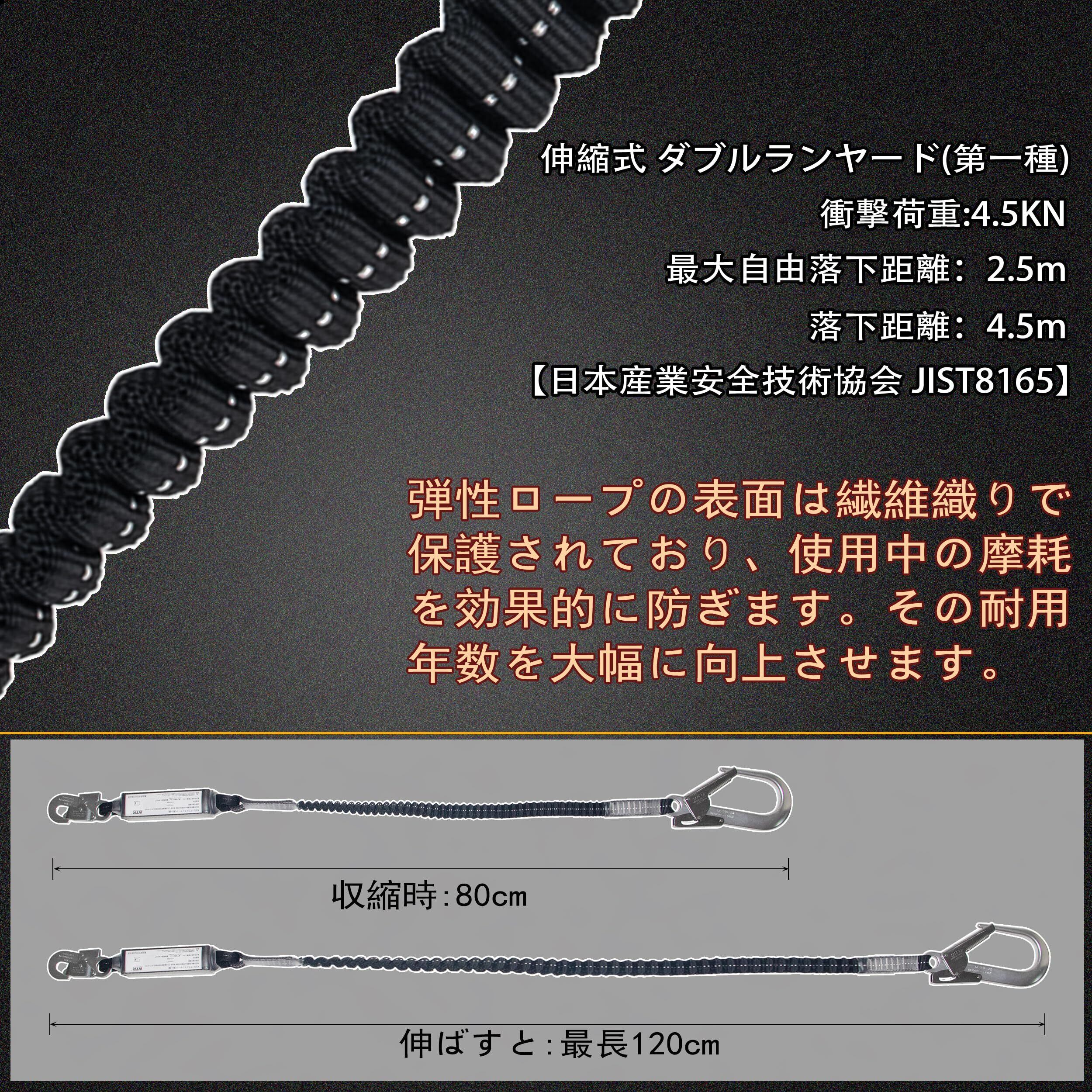 [Baldr Hoder] 【新規格適合】伸縮式ランヤード 1丁掛け 超軽量 ハーネス用/胴ベルト型用 墜落制止用器具 新規格適合 新規格 落下防止 電気工事 高所での安全作業 消防 空中作業に適しています 屋根の修理 林業伐採 洞窟探検