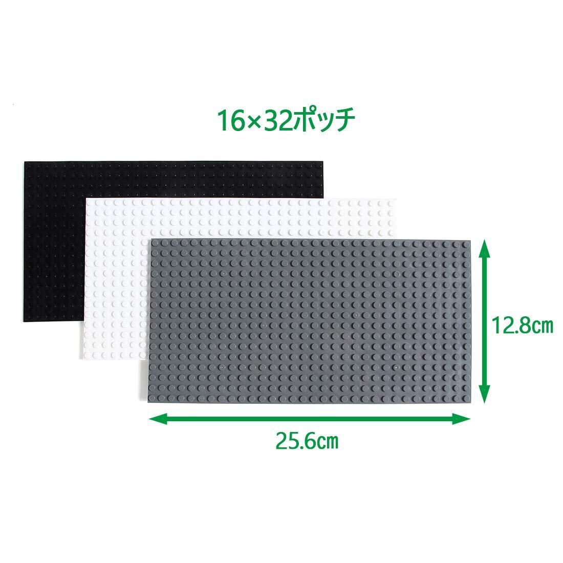 【在庫セール】INIBUD 基礎板 ブロック プレート クラシック 互換性 16×32ポッチ 両面 柱付き 板3枚 柱12本 セット (ホワイト、グレー、ブラック)