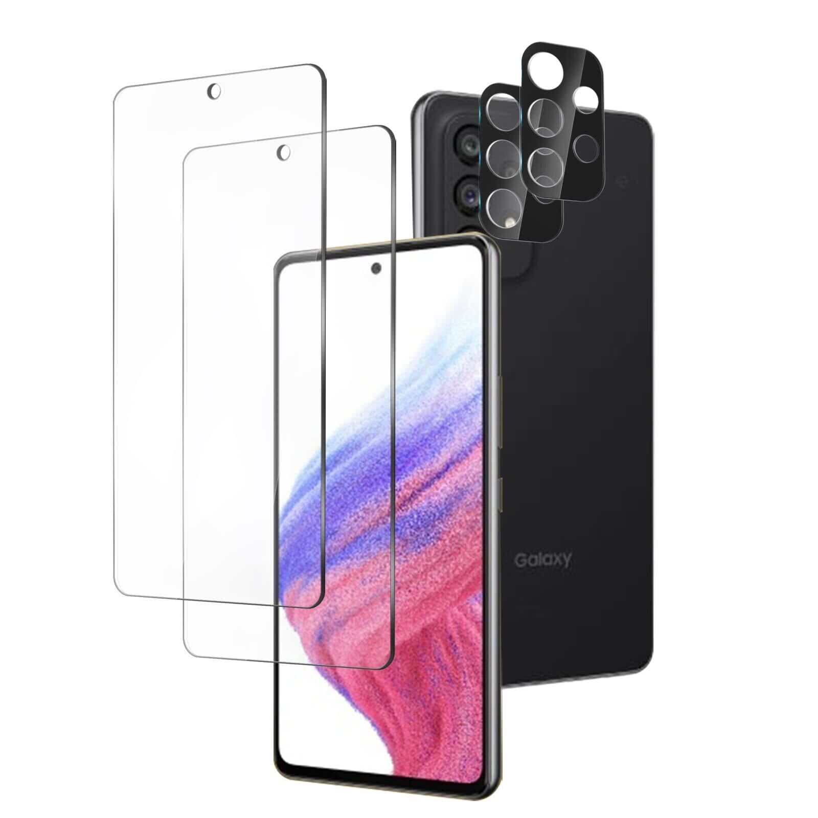 JACRON Galaxy A53 5G フィルム 2枚 + カメラフィルム2枚【指紋認証対応】GalaxyA53 SC-53C / SCG15 保護フィルム 日本旭硝子素材強化ガラス 9H硬度 耐衝撃 全面保護 指紋防止高光沢 自動吸着 ギャラクシーa53 5g 保護フィルム ラウンドエッジ加工 ケース対応