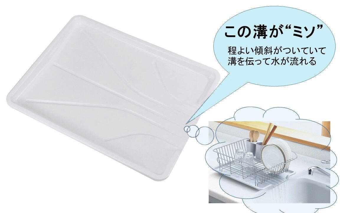 トレーの水を捨てる手間が省ける! トレーが傾斜しているのでシンクに水が流れていきます。