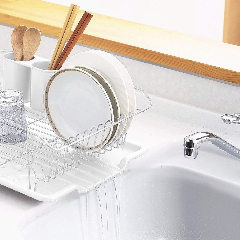 パール金属 金属 食器 水切り かご 水が流れる トレー付 ヨコ置き タイプ ホワイト 白 アルデオ HB-3466