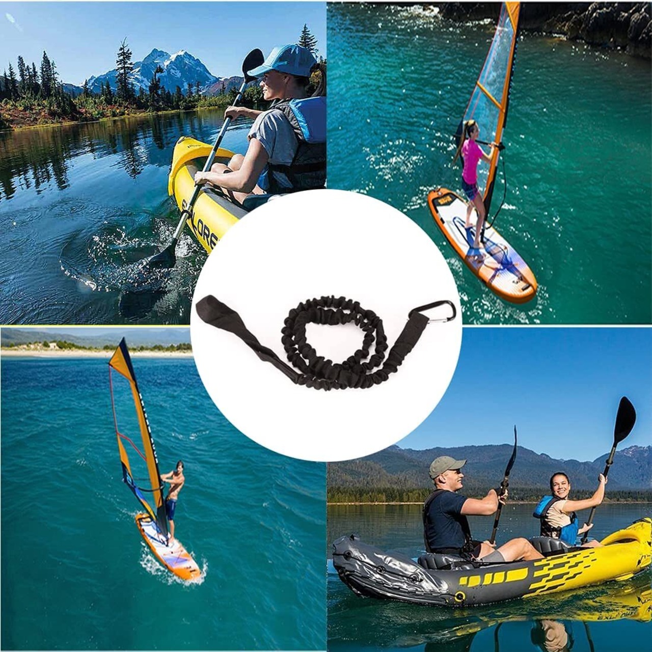伸縮性コード:カヤックのパドルリーシュは 95cmから150cmまで拡張可能。