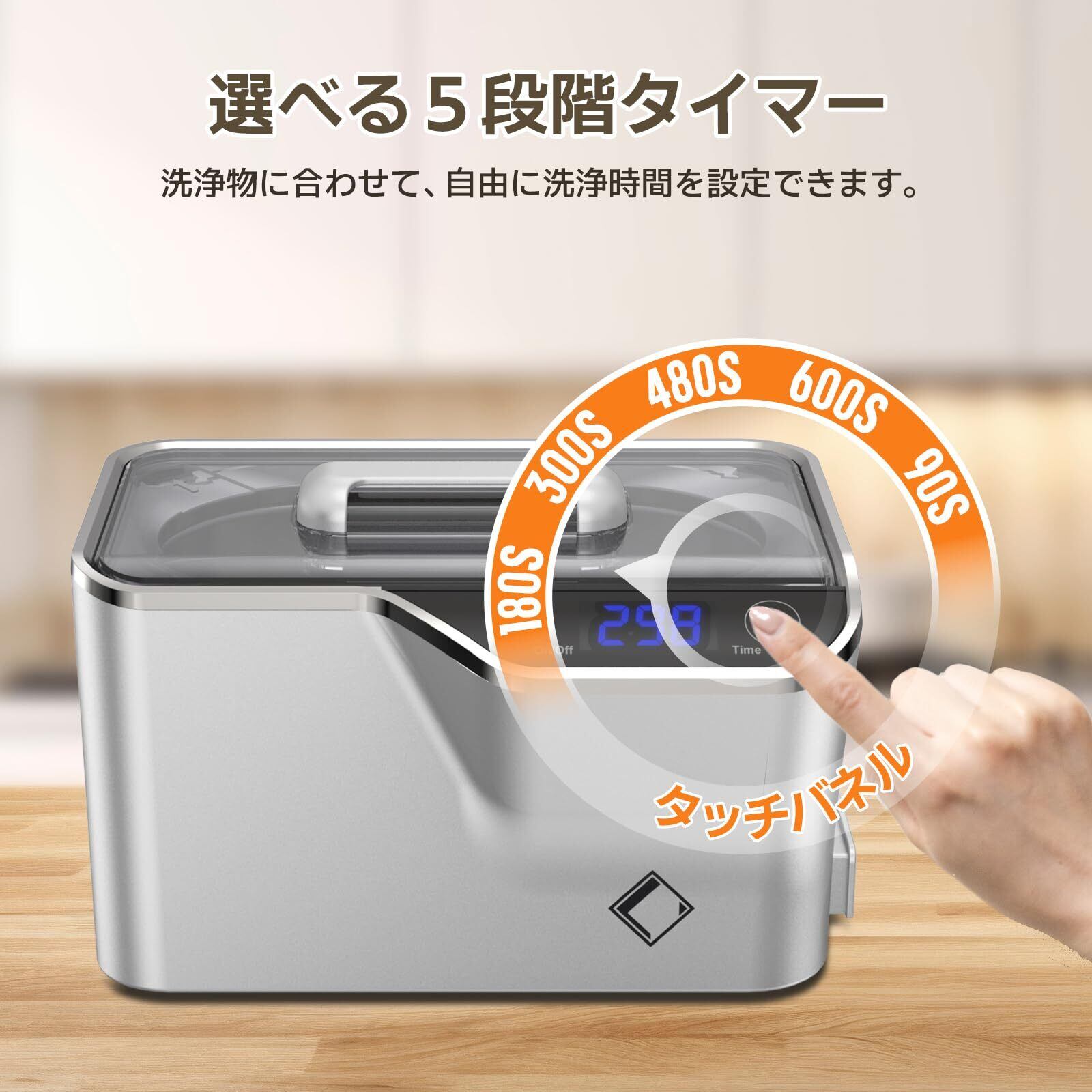 ✨【操作簡単・5段階タイマー制御】超音波を水に発生させて、腕時計、メガネ 、アクセサリー等の微細な隙間に溜まっている汚れを取り除く超音波洗浄機です。5段階のタイマー機能(180、280、380、480、90秒)が搭載されています。汚れの度合いや洗浄頻度応じてタイマーが設定できます。洗浄中、タイマーはカウントダウン表示で、残りの洗浄時間がひと目で分かります。