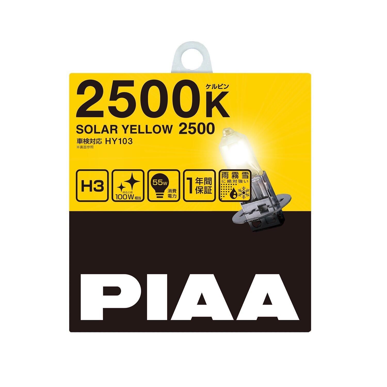 PIAA ヘッドランプ/フォグランプ用 ハロゲンバルブ H3 2500K ソーラーイエロー 車検対応 【雨・霧・雪に見やすい】 2個入 12V 55W(100W相当) 安心のメーカー保証1年付 HY103