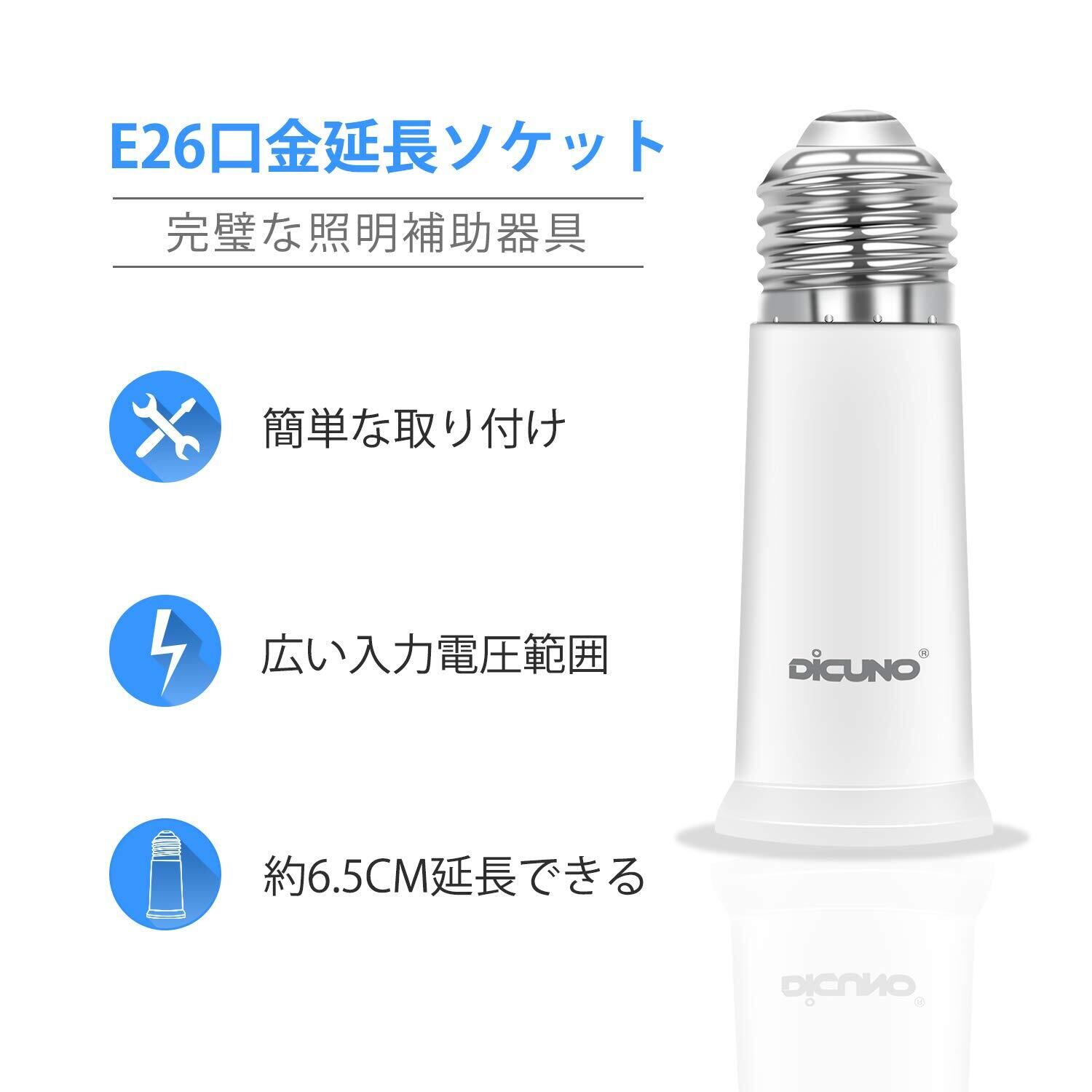 DiCUNO E26→E26 口金延長アダプター E26 延長ソケット 約6.5CM延長する 難燃性材料PBT 2個セット