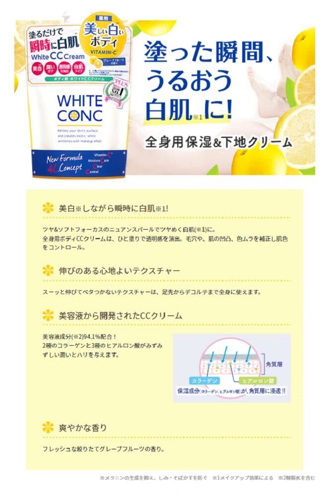 WHITE CONC ホワイトコンク ホワイトニング CC CII 200g〈CCクリーム 全身用 顔用 美白 グレープフルーツの香り 保湿 トーンアップ 正規品 医薬部外品>