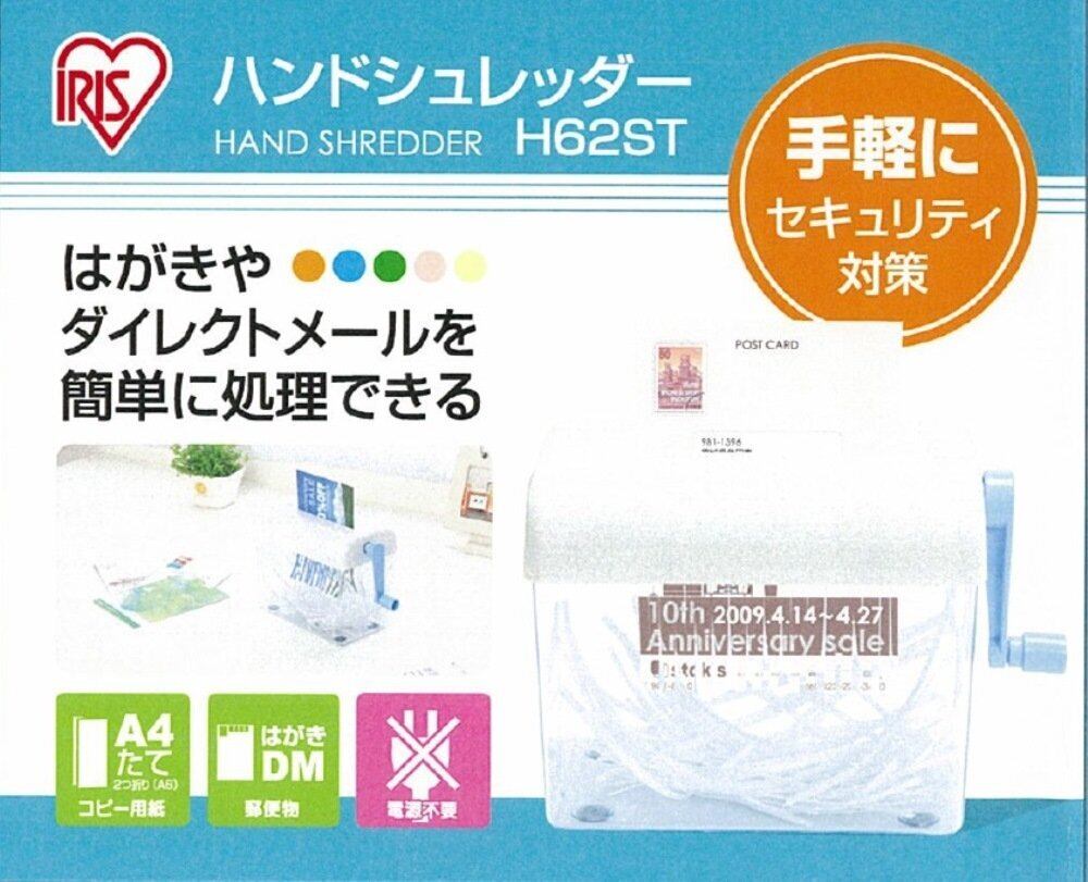 アイリスオーヤマ(IRIS OHYAMA) ハンドシュレッダー 家庭用 卓上 ストレートカット ダストボックス1.5L コンパクト H62ST ブルー