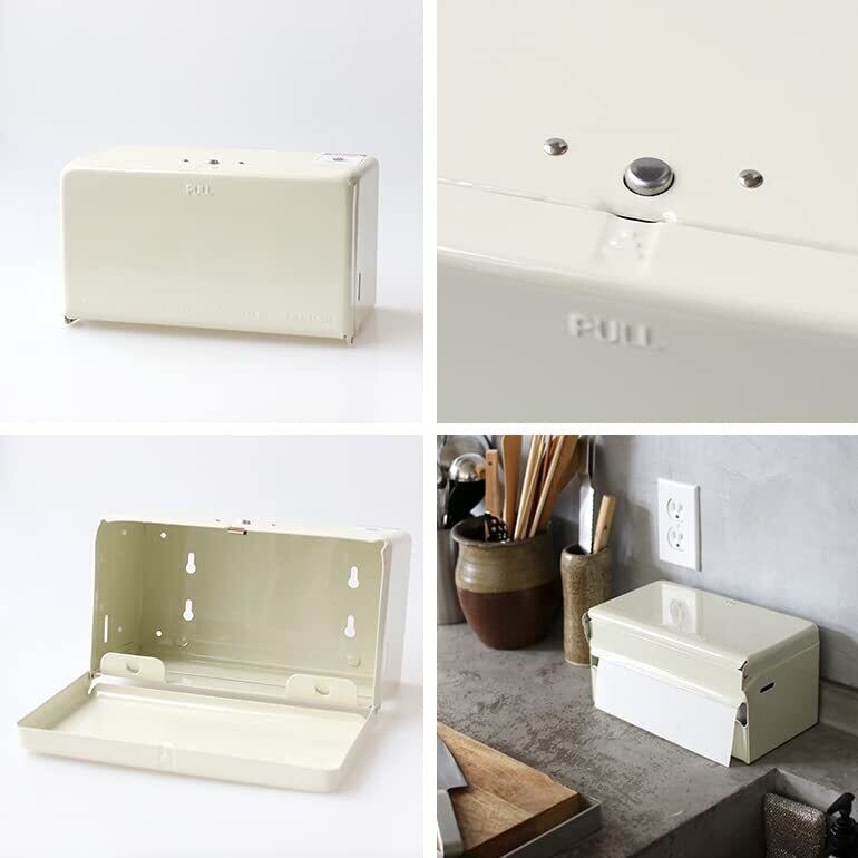 何気無いアイテムながら、自宅でも店舗でも雰囲気作りのキーポイントになる人気アイテム。 壁にかけても置いても使いやすい、嬉しい2WAY仕様。 中に収めるティッシュもお好みと用途によって選べます。 自宅でも、敢えてアメリカンダイナーにある様な硬いペーパーを入れて、ガサガサと音を立たせて使いたい。 プッシュボタンタイプの開閉なので、手間いらずです。