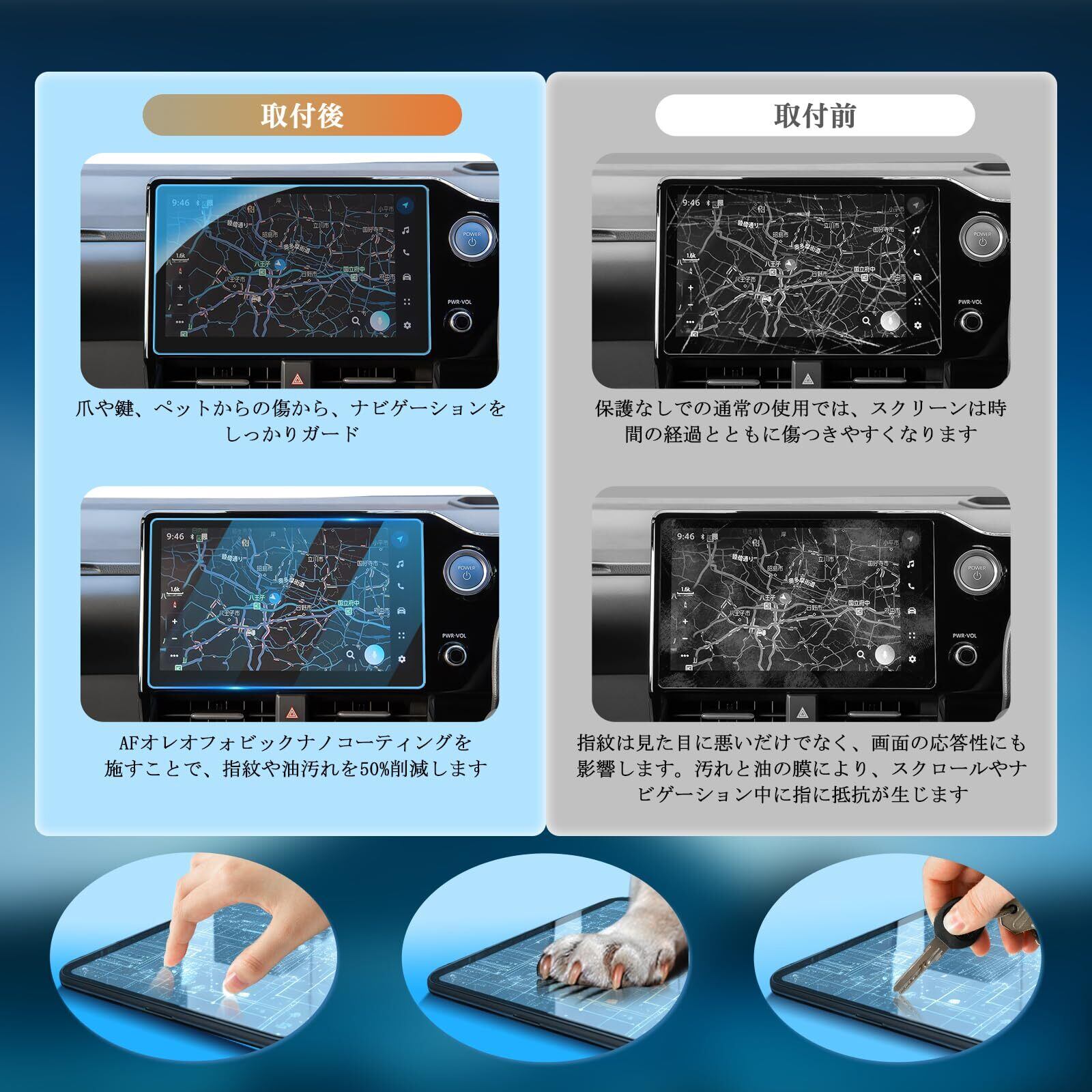 【容易な取付け】 ナビスクリーンプロテクターに付属の工具を使用することで簡単に取り付けができ、スクリーンにしっかりと密着させるためには数ステップの簡単な作業が必要です。また、車種専用設計、ナビ本体にフィッティングを確認済み、違和感なくぴったりフィットします。