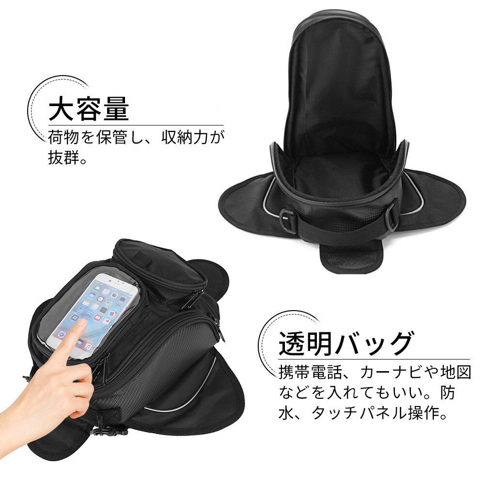 タンクバック 防水タンクバッグ オートバイ用収納タンクバッグ 強力マグネット式 35×18×10cm 透明ポーチ17×10cm スマホ/タッチパネル操作/自転車用/オートバイ用収納バッグ 汎用タイプ(ブラック)