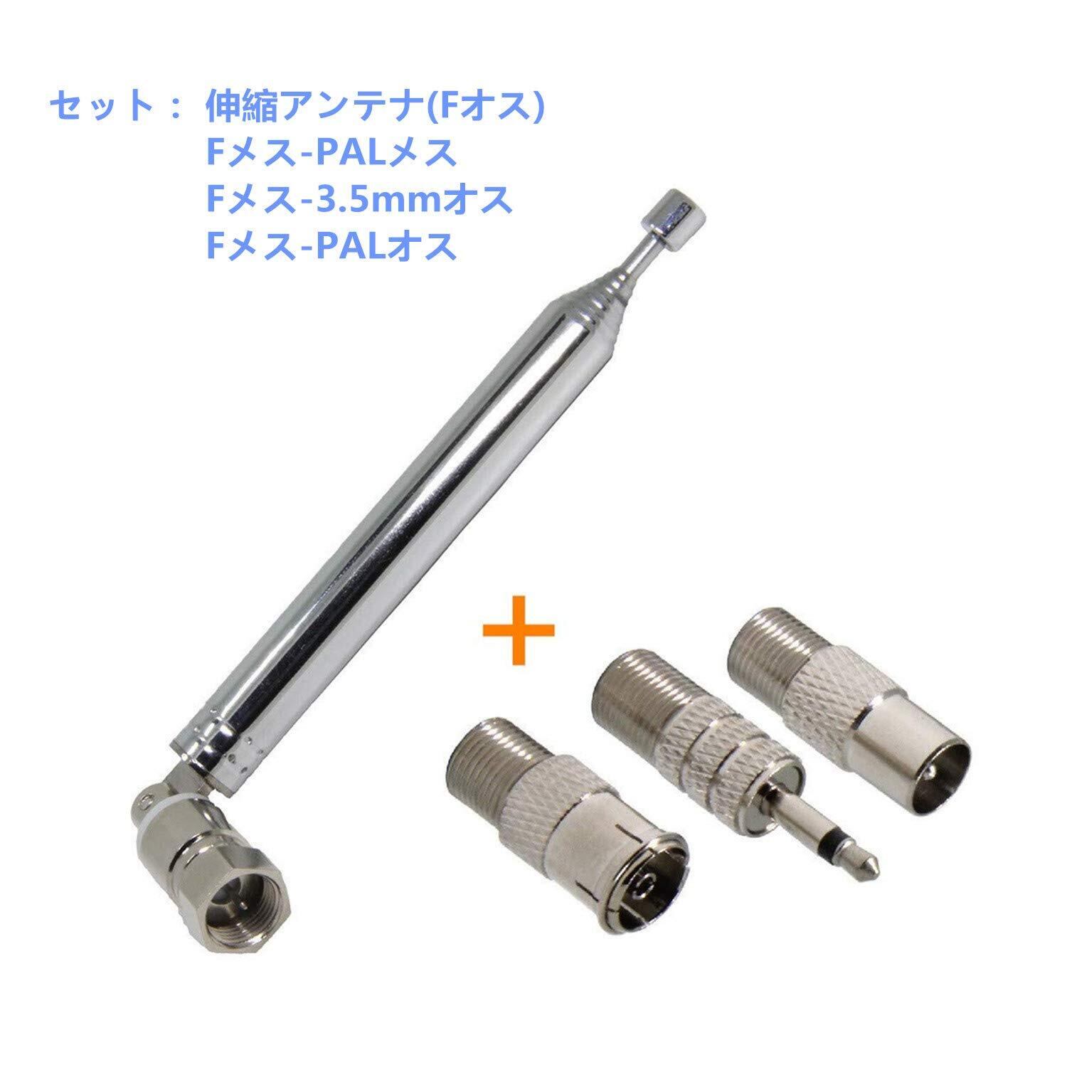 セット:Fタイプ伸縮アンテナ+3種変換プラグ(Fメス-3.5mmオス、Fメス-PALオス、Fメス-PALメス)