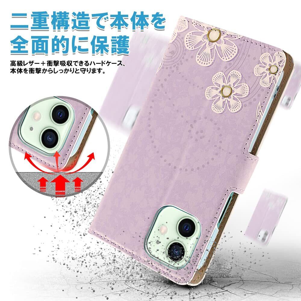 【数量限定】iitrust Galaxy A52 5G ケース 手帳型 ギャラクシーA52 5G ケース カバー SC-53B手帳型ケース 耐衝撃 カメラ穴 合皮レザー スタンド機能 カードホルダー パープル 花 フラワー