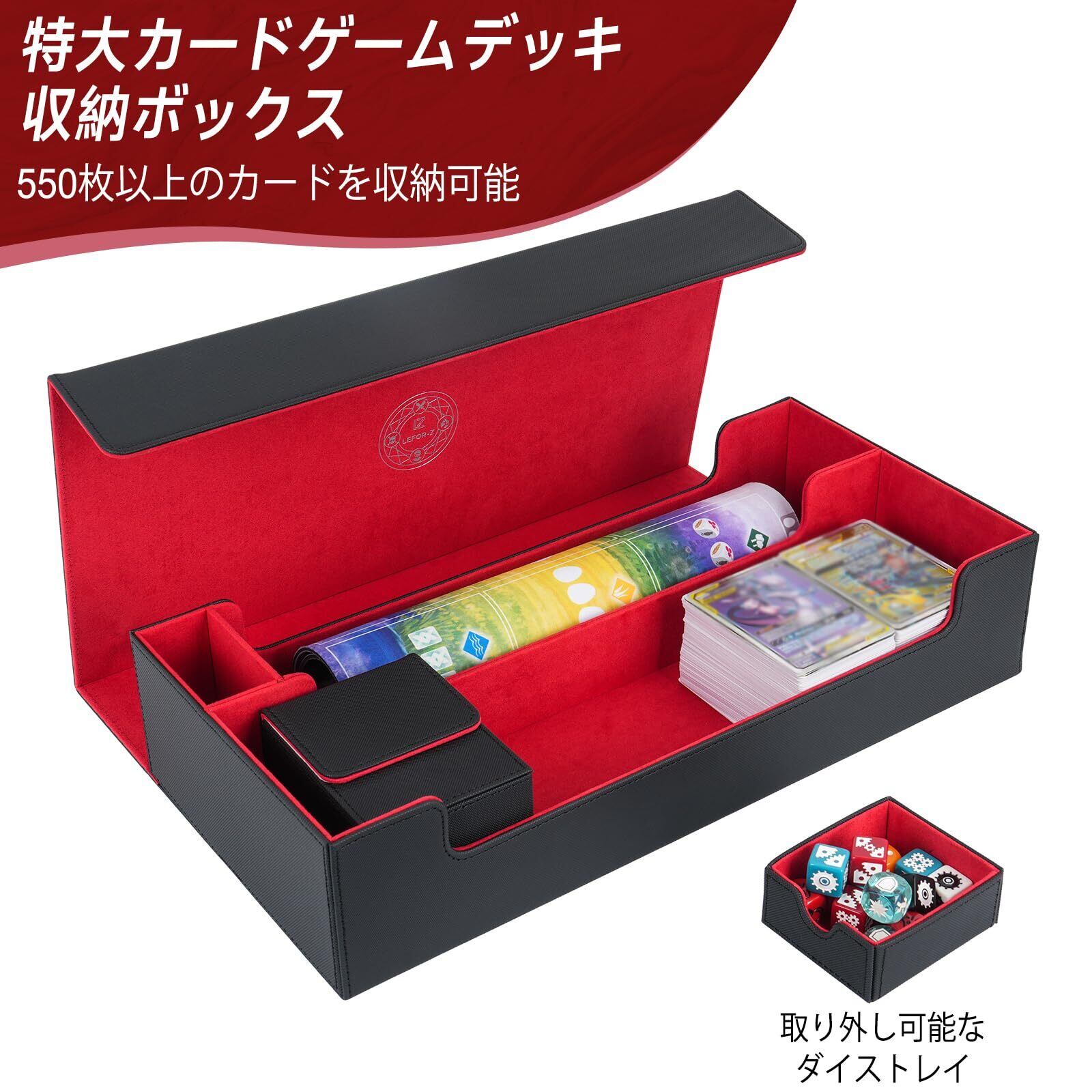 デッキケース カードボックス ショーケース カード マグネットローダー 収納 プレイマット ケース ストレージボックス 550枚 大容量 PUレザー(ブラック&赤)