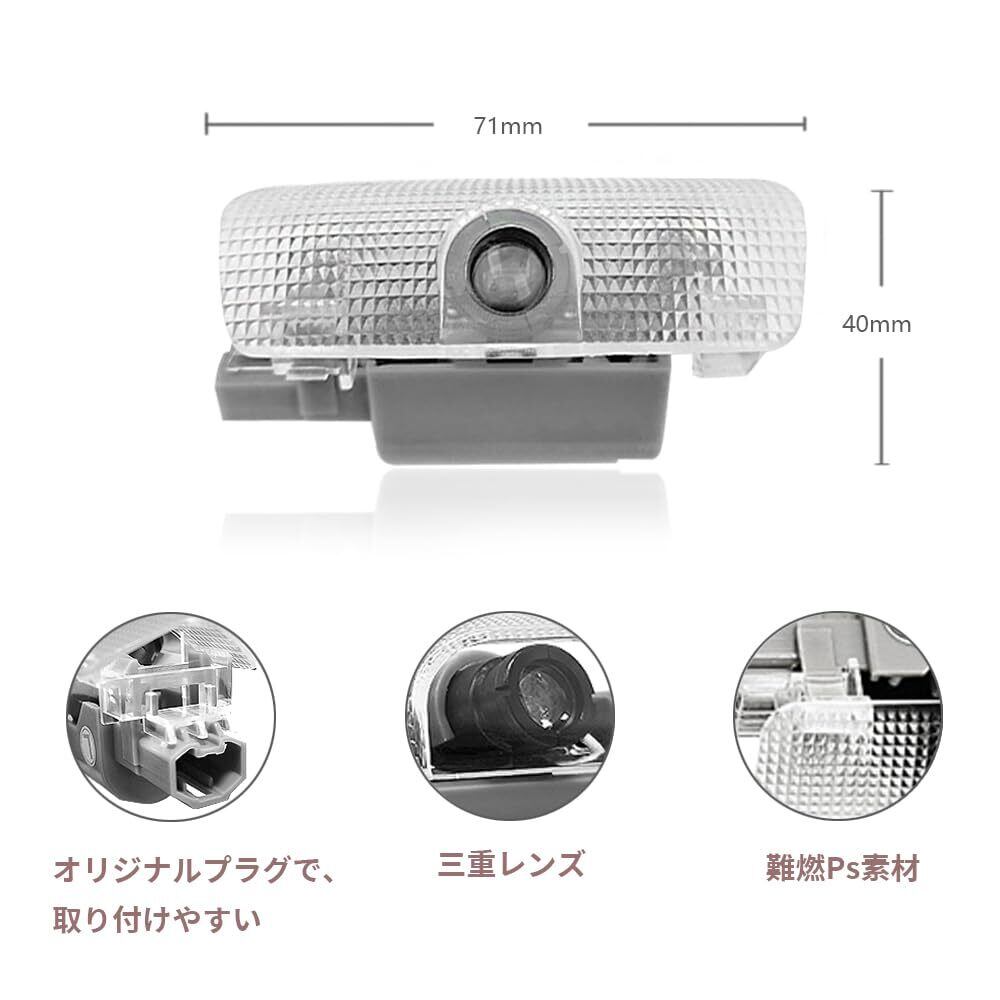 『高品質』:100%ブランドの新しい車のカーテシライト。LEDの寿命:100,000時間以上。純正カーテシランプは暗くて見えにくいですので、LEDカーテシはロゴ照射部にハイパワーチップを採用しておりますので、鮮明になり本来のカーテシランプとしての効果も向上します。