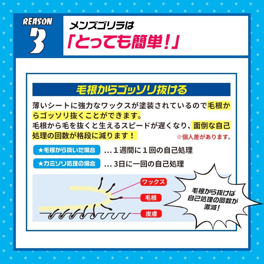 【※異なるパッケージデザインにて到着する場合がございます※】【メンズゴリラ ワックス脱毛シート】ムダ毛の処理はしたいけど、サロンに行くのはちょっと怖かったりするあなたにオススメのメンズゴリラ・ワックス脱毛シートです。腕や足に濃いムダ毛が大量に生えてるけど、サロンに行かずにまずは気軽に脱毛シートで処理してみませんか?温めて・張って・はがすだけの3ステップで簡単にムダ毛が処理できちゃいます!