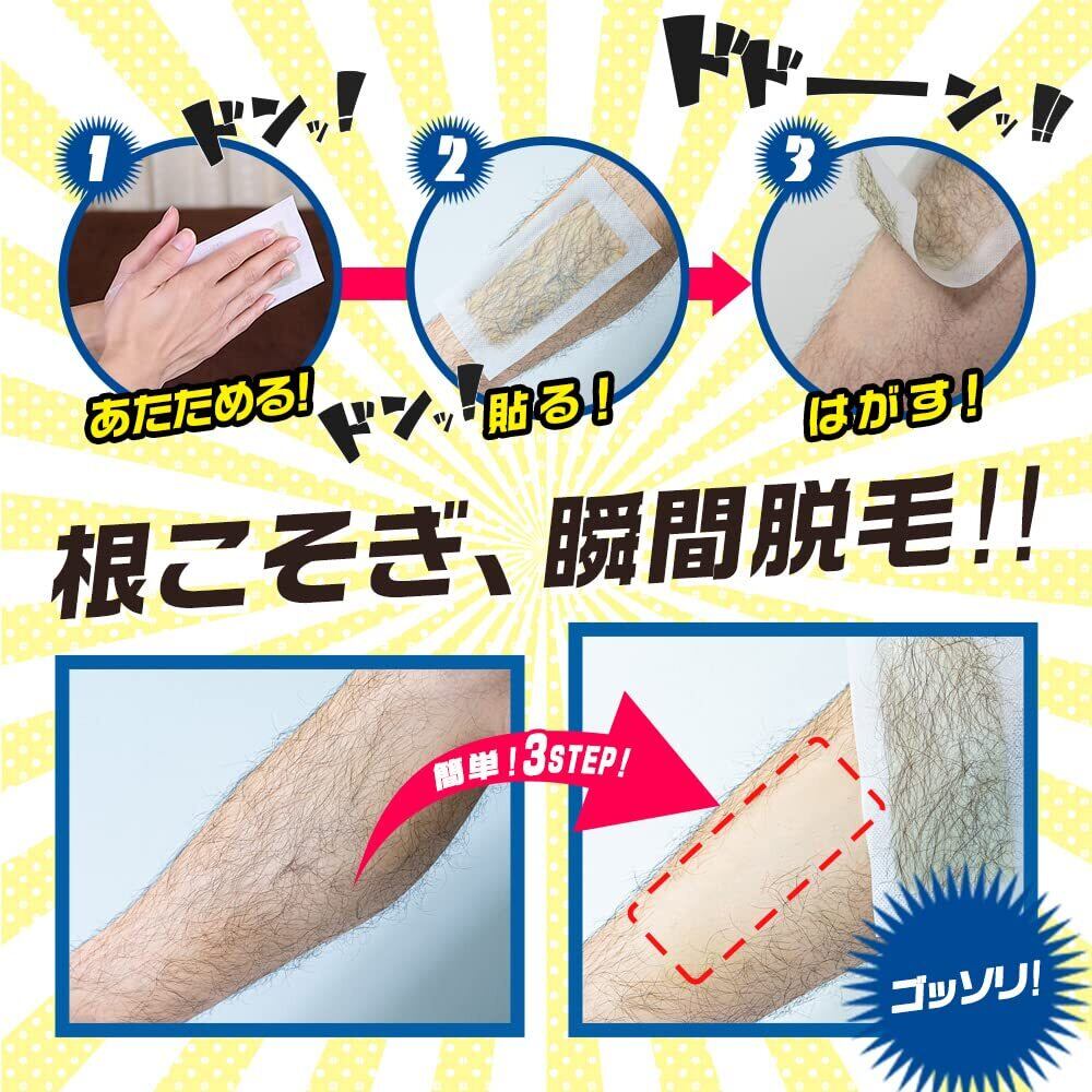 【手軽に綺麗に脱毛を】脱毛シートを一気に剥がしてムダ毛を処理するので、非常に手軽かつ綺麗に脱毛を行うことができます。痛みに関して、毛根から毛を引き抜くので若干の痛みがございますが、使用方法通りに進めていただければ痛みを最小限に抑えることができます。