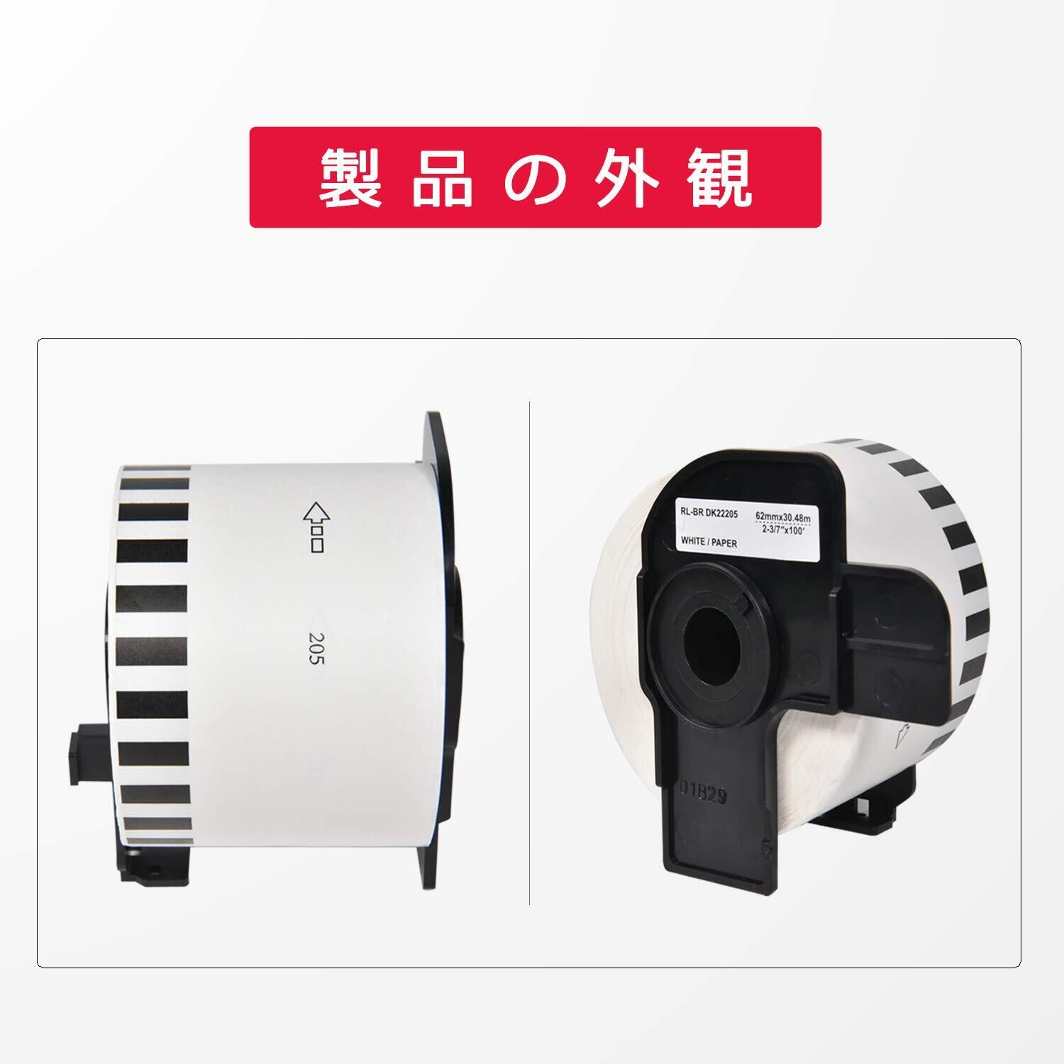 Mylabel DK-2205 5個セット【5個のフレーム付】ブラザー 互換のプリンター QLシリーズ用 感熱ラベル DKテープ/DKラベル(62mm x 30.48m) 長尺紙テープ大