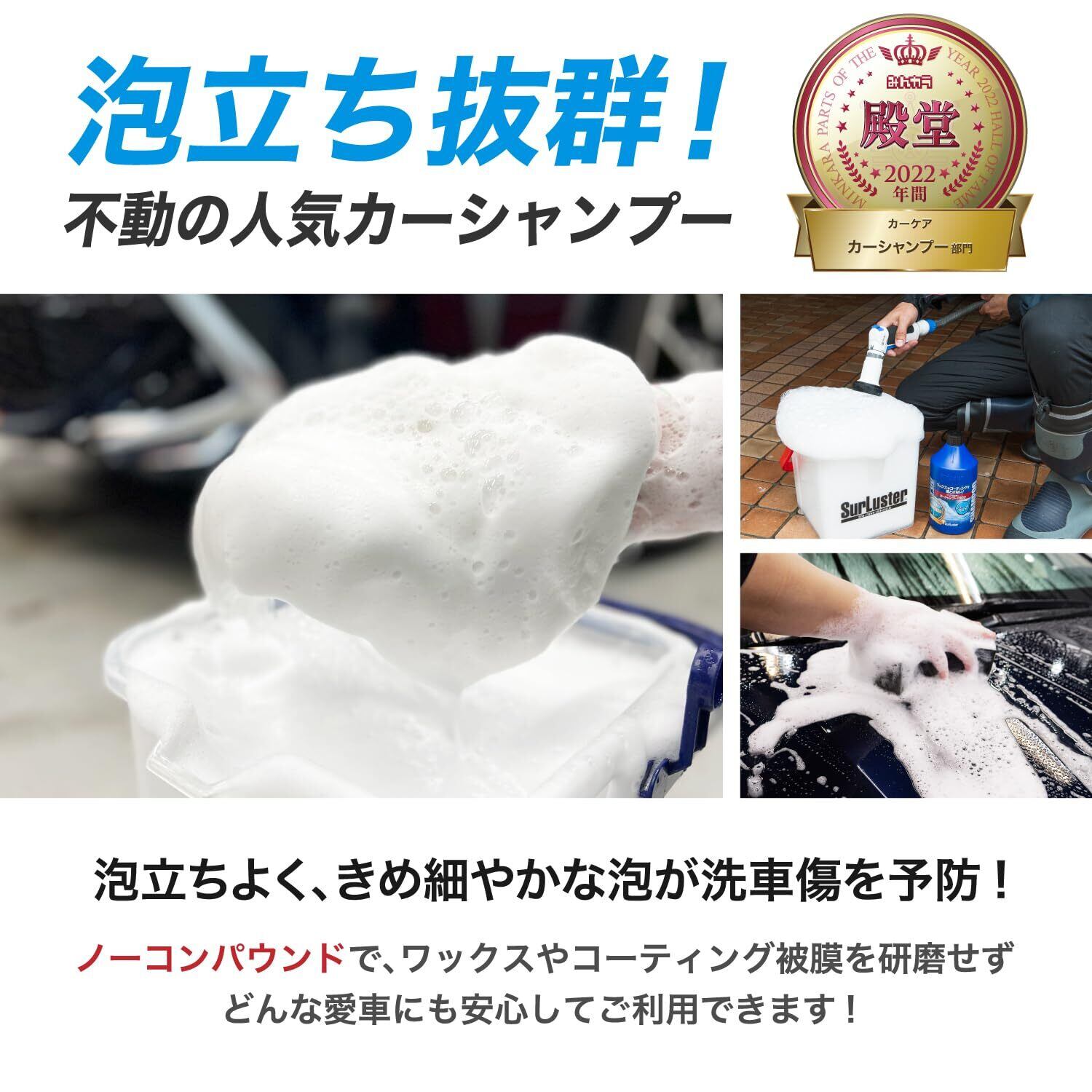 SurLuster(シュアラスター) カーシャンプー1000 洗車 中性 泡立ち 全塗装色対応 コーティング車対応 1L 車 ボディ タイヤ ノーコンパウンド S-30