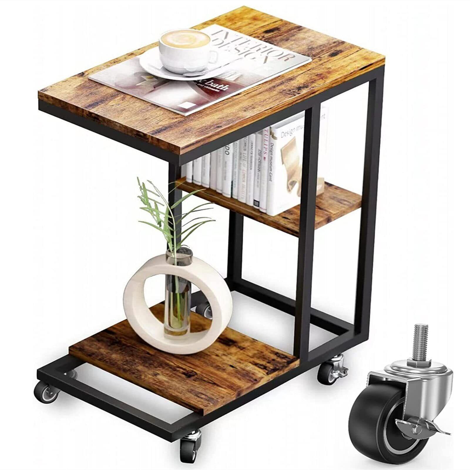 【新着商品】ZXD サイドテーブル キャスター付きコの字型デザイン ベッド リビングサイドテーブル ソファサイドテーブル おりたたみサイド サイドテーブル キャスター付き テーブル サイドラック ベッドサイドテーブル ビンテージ | Premium Stage