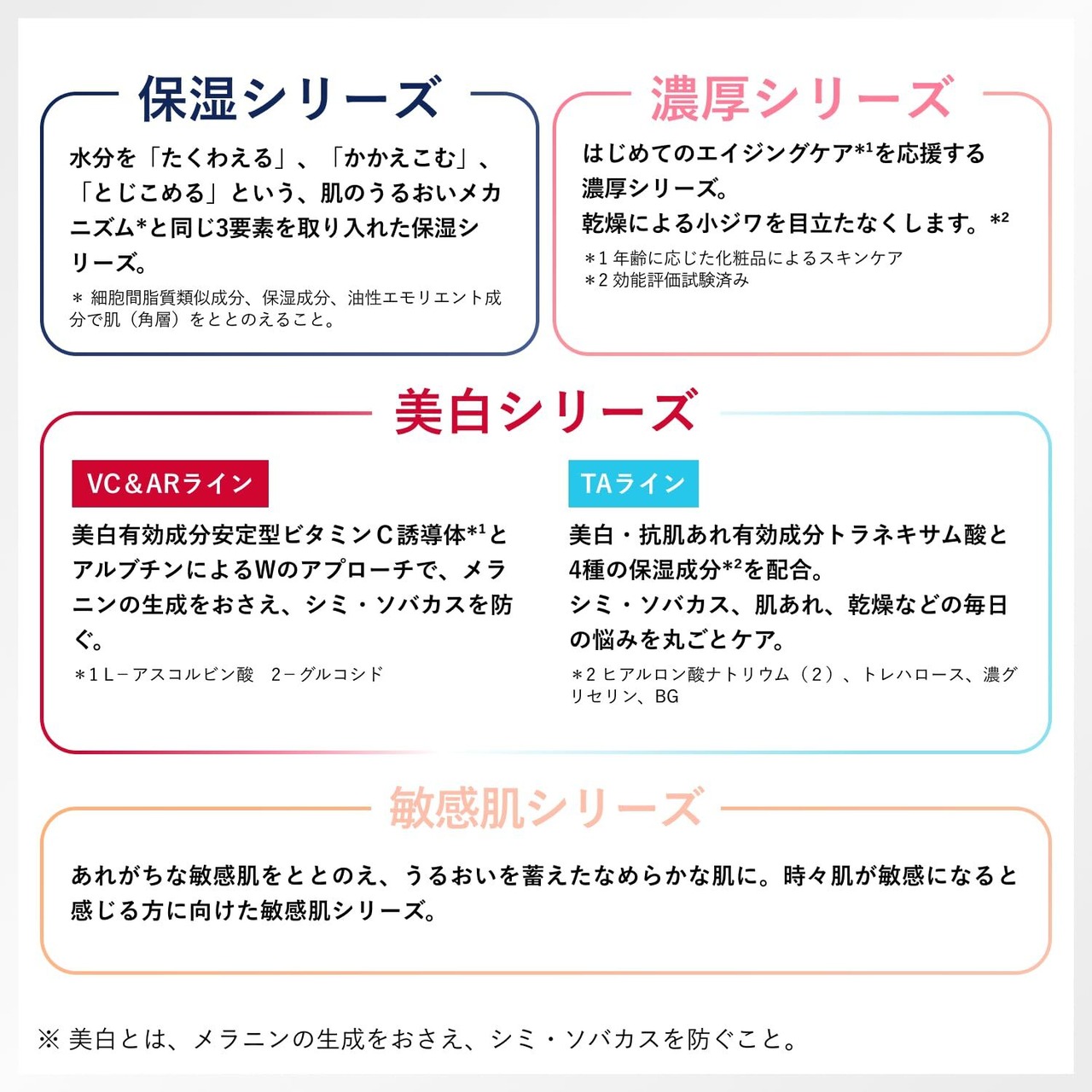 ●【たっぷりうるおう、とてもしっとりタイプ】肌にしっかりうるおいを与えて乾燥を防ぎ、もっちりふっくらとしたしっとり肌に導く化粧水です。