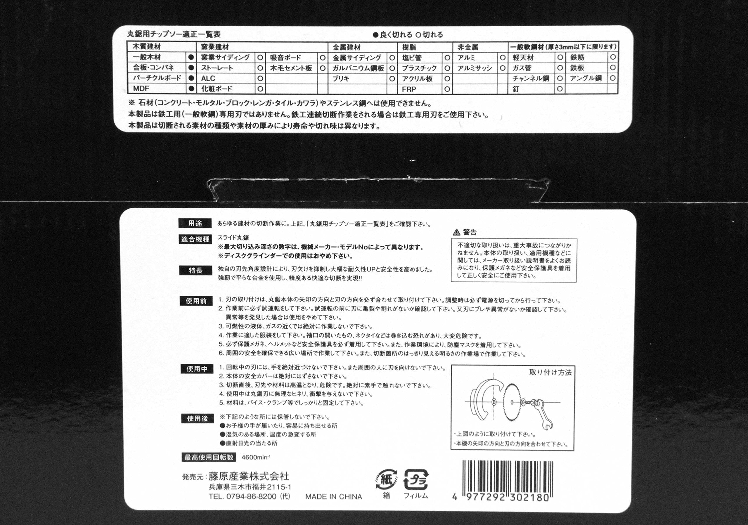 適合機種:スライド丸鋸※最大切り込み深さの数字は機械メーカー・モデルNoによって異なります※ディスクグラインダーでの使用はおやめ下さい