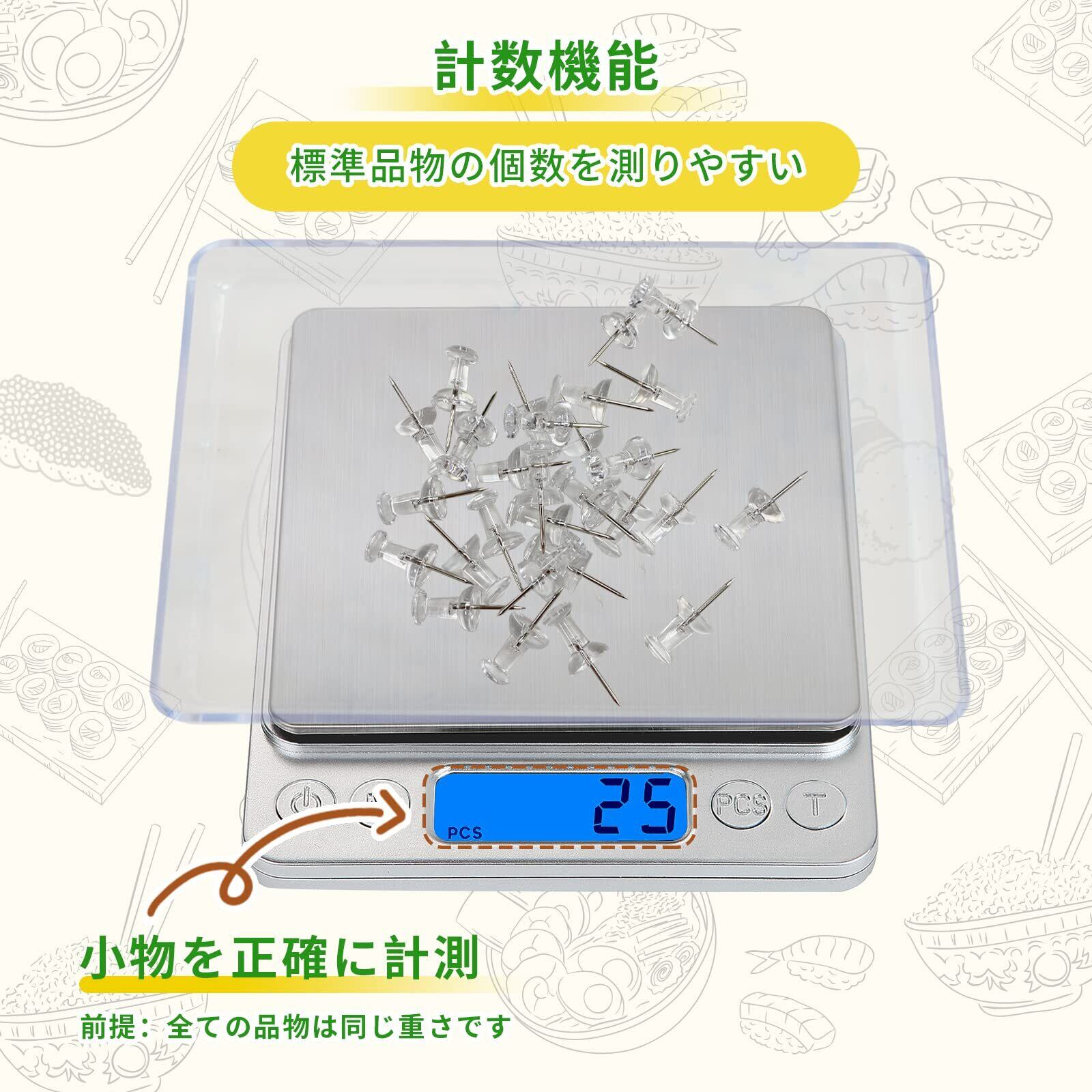【多機能搭載】計数機能 自動校正、風袋引き機能、自動パワーオフ機能(時間設定でき)、カウンティング機能など付き、LEDバックライト付いていて見やすくなります。※電力の残量ははかりの精度に影響しますので、バッテリーを交換してくださいませ。