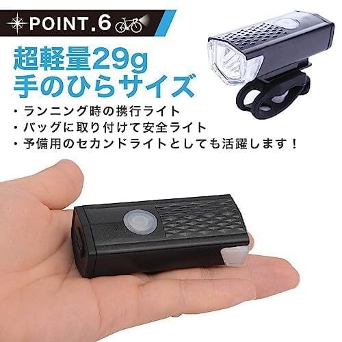 自転車ライト 自転車用ライト 防水 USB充電式 小型 後付け 明るい 子供 テールライト付 LED 通勤通学 夜間 回転式 コンパクト 軽い 軽量 回転式 簡単着脱 (ブラック)