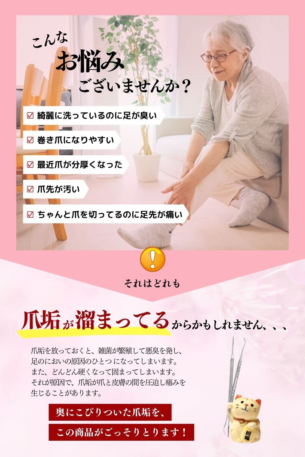 爪垢取り & 爪ヤスリ 巻き爪 肥厚爪 足の臭い 対策に こだわりのステンレス製2本セット【美陽BIYOU】【介護福祉士監修】 シルバー