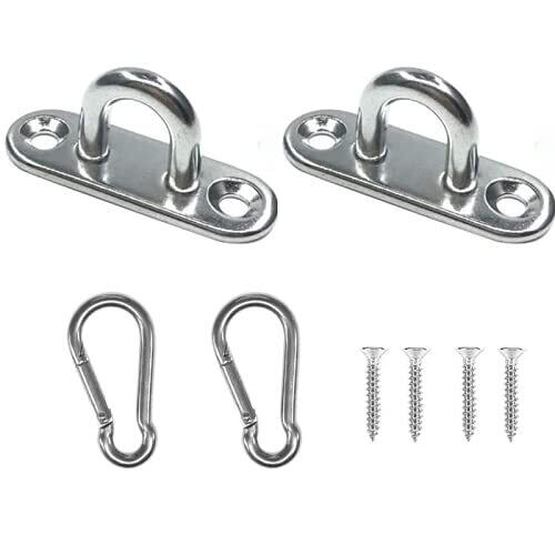 【在庫セール】ZOYUBS パッドアイ アイプレート 長方形パッドアイ 長方形アイプレート ステンレスループ マッチングネジ 壁掛け式 パッドアイ 天井吊り下げ用 304ステンレス鋼 ステンレスループ フック アイ耐久性壁/天井マウントフック 天井フック U型 固定 金具 取り付け金具 耐腐食性 止め 高強度木製ドア 戸棚 灯 シェードセイル 日よけ ブランコ ハンモック用 (厚さ6mm 2個+カラビナ2個入り) | Premium Stage