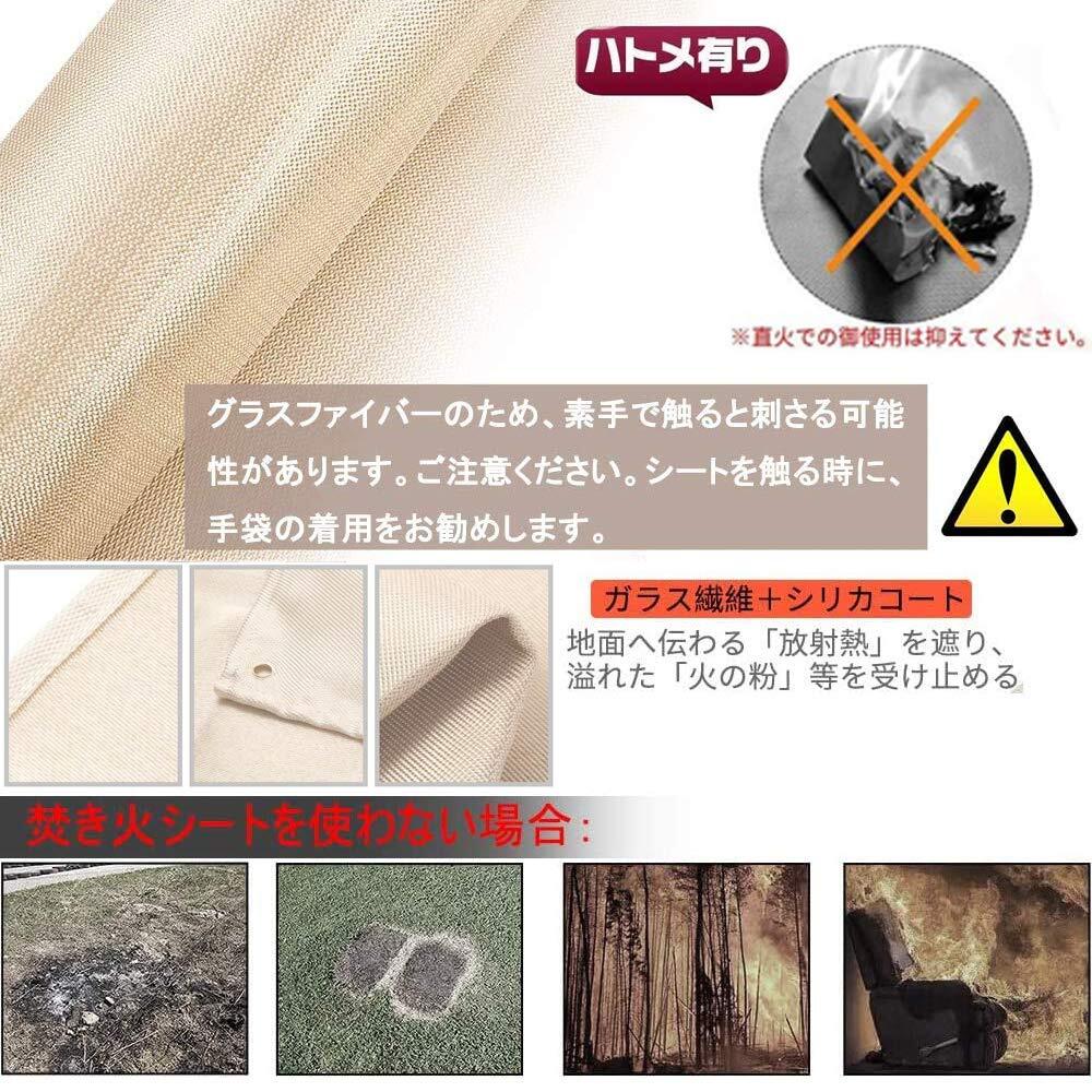 【たき火台用シート】耐熱温度約550℃で熱に強く、ワイドサイズでBBQグリルの下に敷くと、火床の火の粉が直に芝生やウッドデッキに落ちるのを防ぐ耐火シート。テントなどの固定ができる4隅ハトメ付きハトメなし紐タイプもございます。