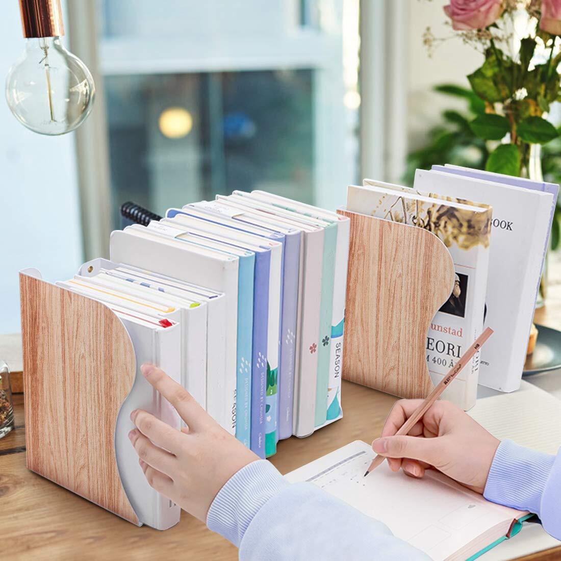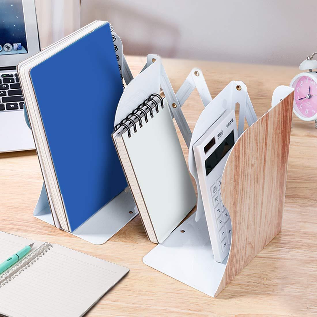 本立て 仕切り ブックスタンド 伸縮自在 デスク 収納 倒れない ブックエンド 金属製 仕切り スタンド デスク整理 卓上本棚 木目柄 (2個組)
