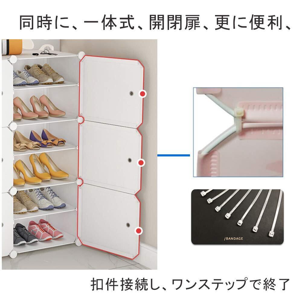【省スペース&大容量】サイズ: 85cm(幅)× 32cm(奥行)×127cm(高さ)材質:本体/樹脂、柱/厚鉄パイプ。28 ~ 42足まで対応できます。ルービックキューブはそれぞれ二重構造になっていて、間の仕切りが取り外し可能になっているため、ブーツやハイヒールなどを収納できるスペースがあり、バッグやシューズボックスなどを収納できます。