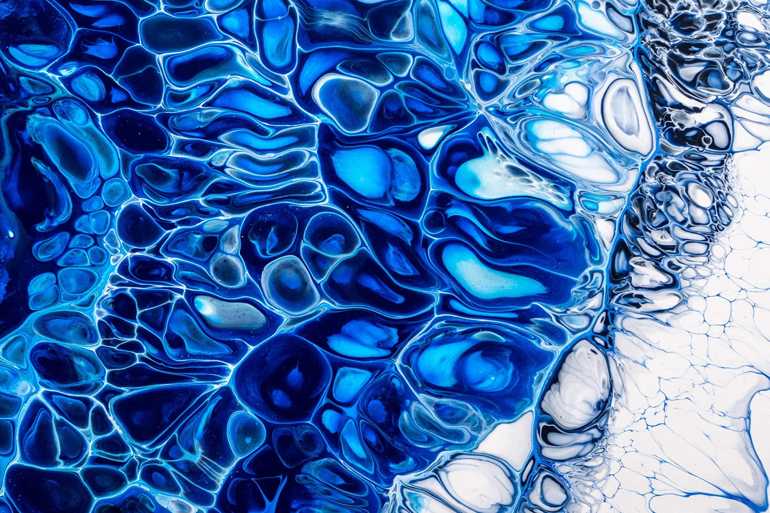 ポーリングメディウムを使ってセル模様を作ることができます。ポーリング混合液の画面に数滴垂らすか、もしくはアクリル絵具とポーリングメディウムの混合液に数滴混ぜて使用します。
