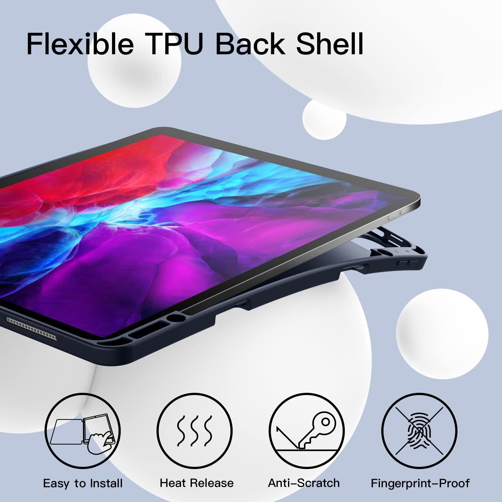 ソフトTPUバック:柔軟性のあるTPUインナーバックは、iPadを傷や衝撃から総合的に保護し、取り付けや取り外しが簡単です。 前面と背面のカバー表面は高品質のポリウレタン製で、シルクのような手触りです。 スリムな形状で快適なグリップを実現。