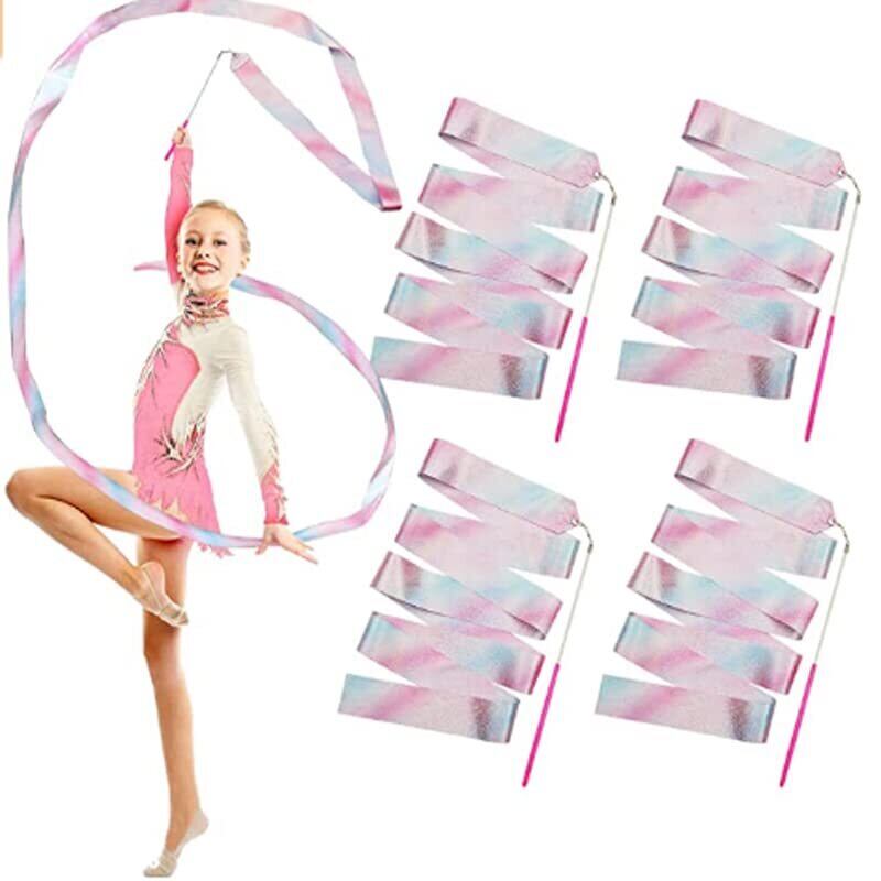 4点セット 新体操リボン ダンスリボン 体操リボン 2m スポーツ用具 バレエリボン 星空 ジム新体操アート 競技用具 体操用具