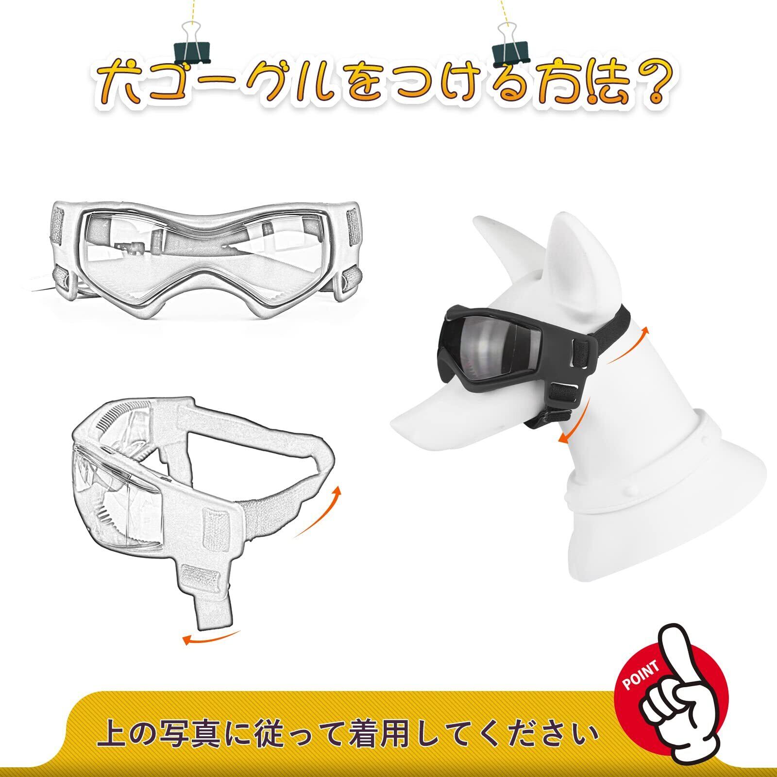 調整可能なゴムひもは、サングラスが顔に密着するように調整します。そうしないと、眼鏡はペットの鼻の上を移動しやすく、目に触れやすくなります。