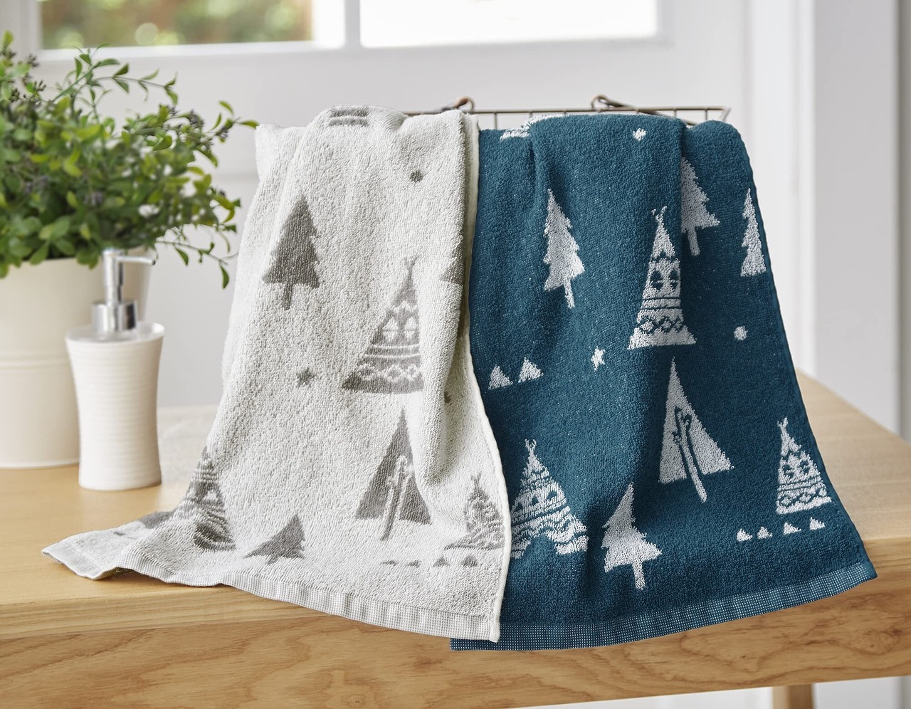 【2022最新】Kosugizen ミニバスタオル 北欧調ジャガード ツリー 2色各1枚入 50×100㎝ 小さなサイズのバスタオル デイリーユース 2枚セット SV-4601-2 | Premium Stage
