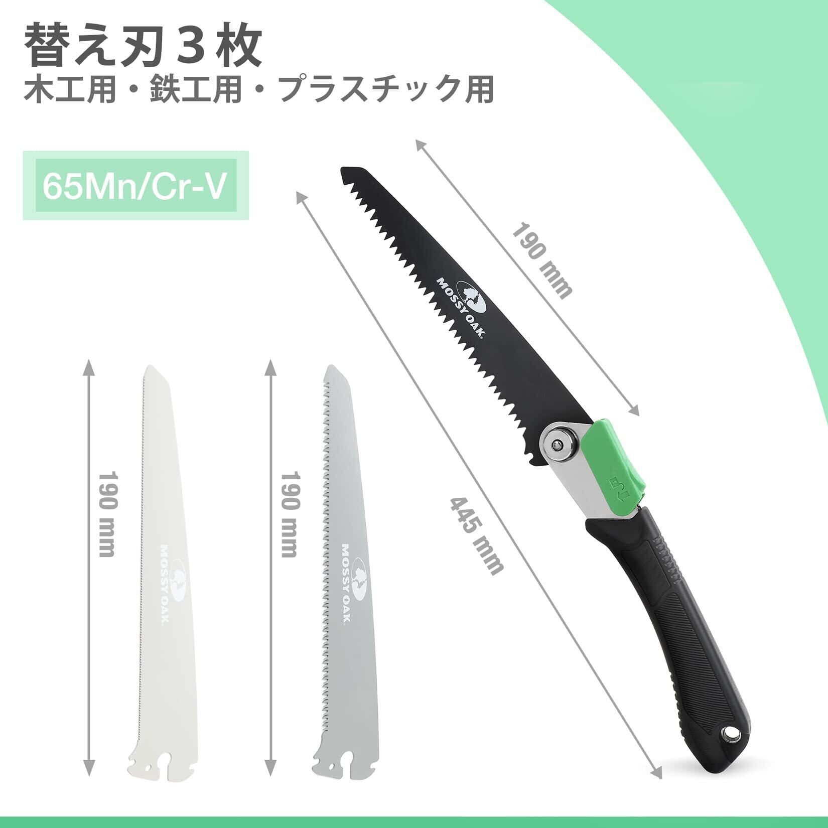 MOSSY OAK ノコギリ 折込のこぎり 剪定鋸 折込鋸 替え刃3枚 折り畳み式 替え刃式 生木用 木工用 硬質プラスチック用 鉄工用替刃付き 多目的廃棄物 粗大ゴミ 安全ロック 専用収納ケース付き