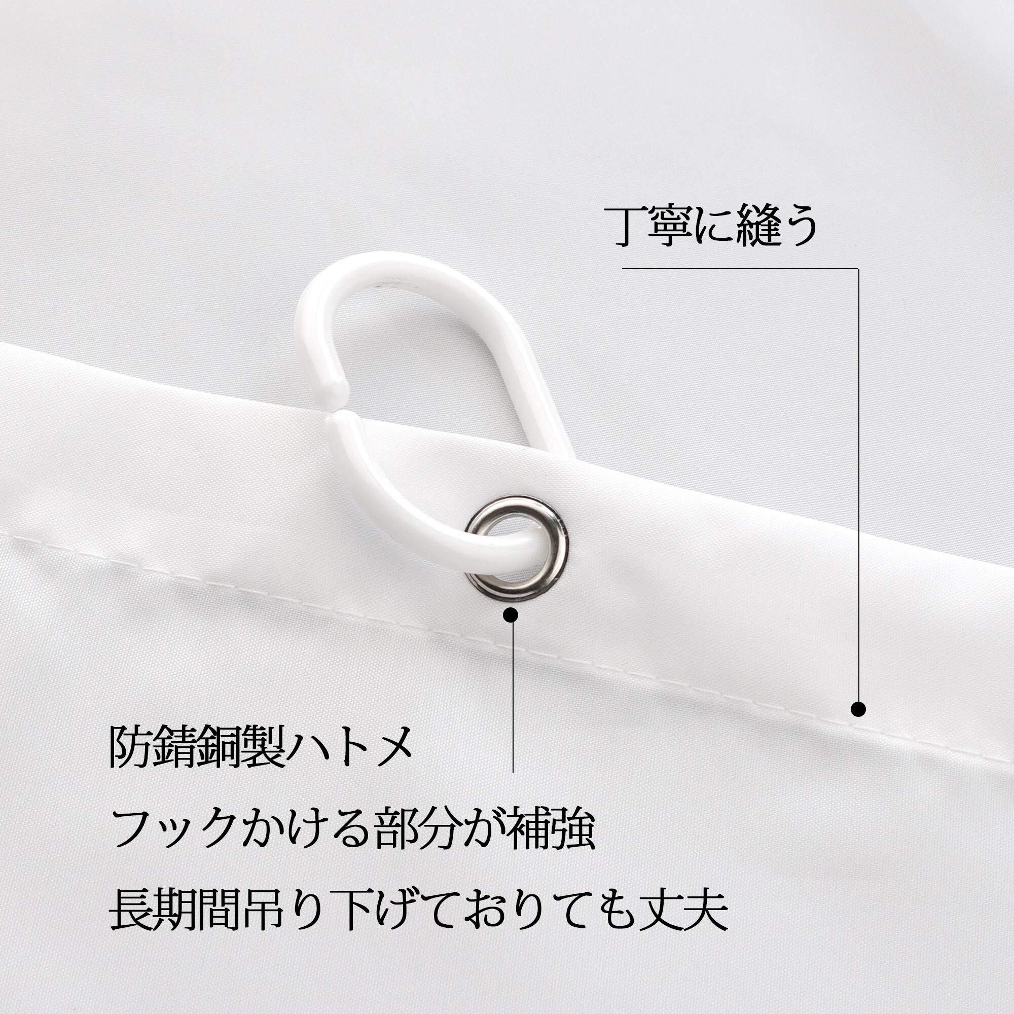 【耐久性あり・洗濯可】補強されたトップヘッダーに沿て防錆ハトメが付き、変形しにくく、丈夫で長持ちします。チェーンウエイト入り重さのある裾は、カーテンの位置を適切に保つし、フィット感がいい。お手洗い、洗濯機使用可能。