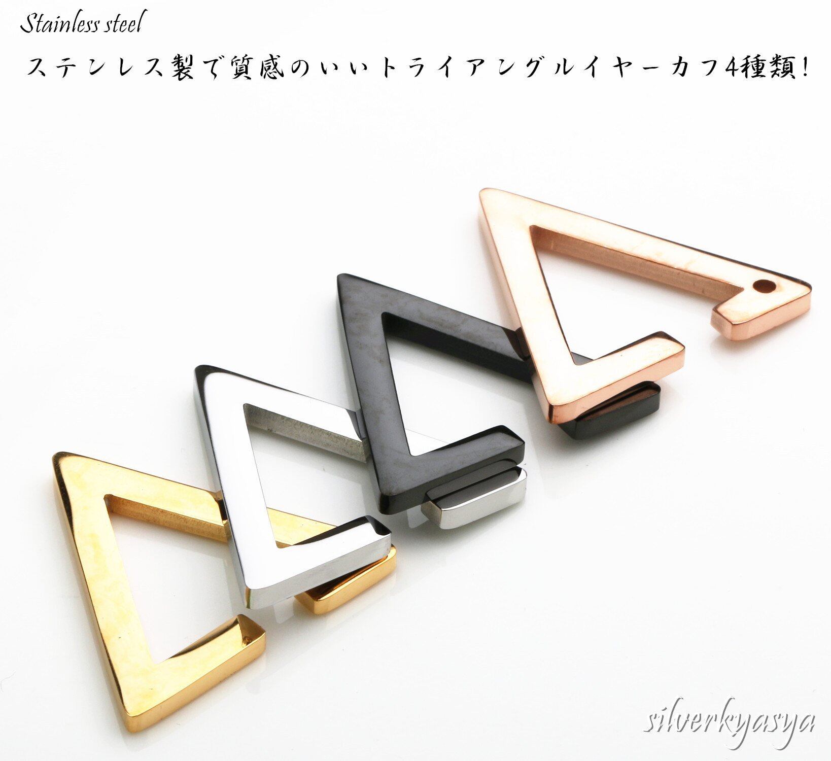 「silverKYASYA」ステンレス素材 三角イヤーカフ トライアングルイヤーカフ ゴールド シルバー ブラック ピンクゴールド イヤーカフ 三角形 メンズ レデース