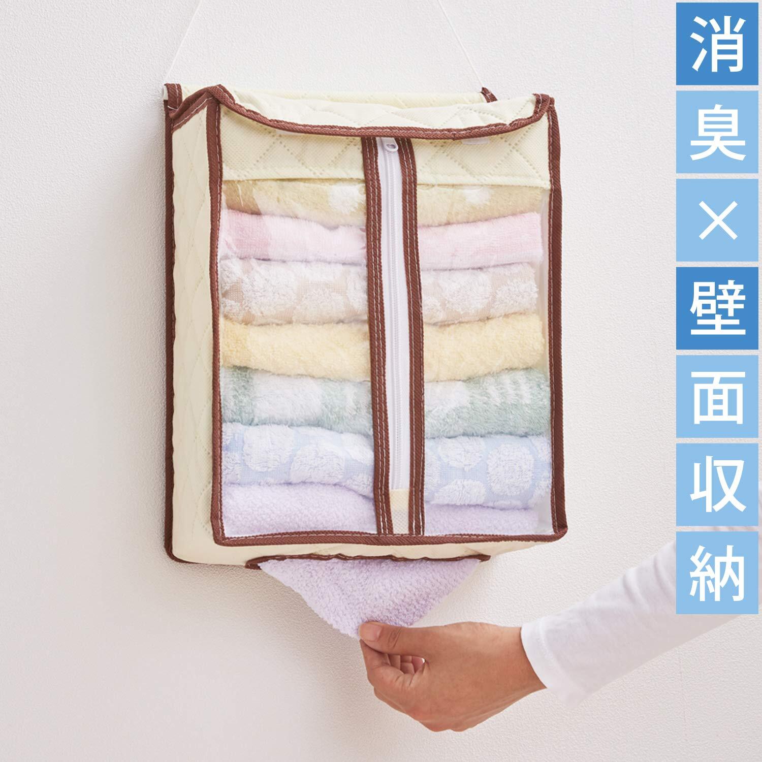 【人気商品】アストロ タオル収納ケース ライトベージュ タオルストッカー 抗菌 防臭 消臭 タオルホルダー 不織布 消臭繊維入り タオル入れ 壁掛け 保管 159-15 | Premium Stage
