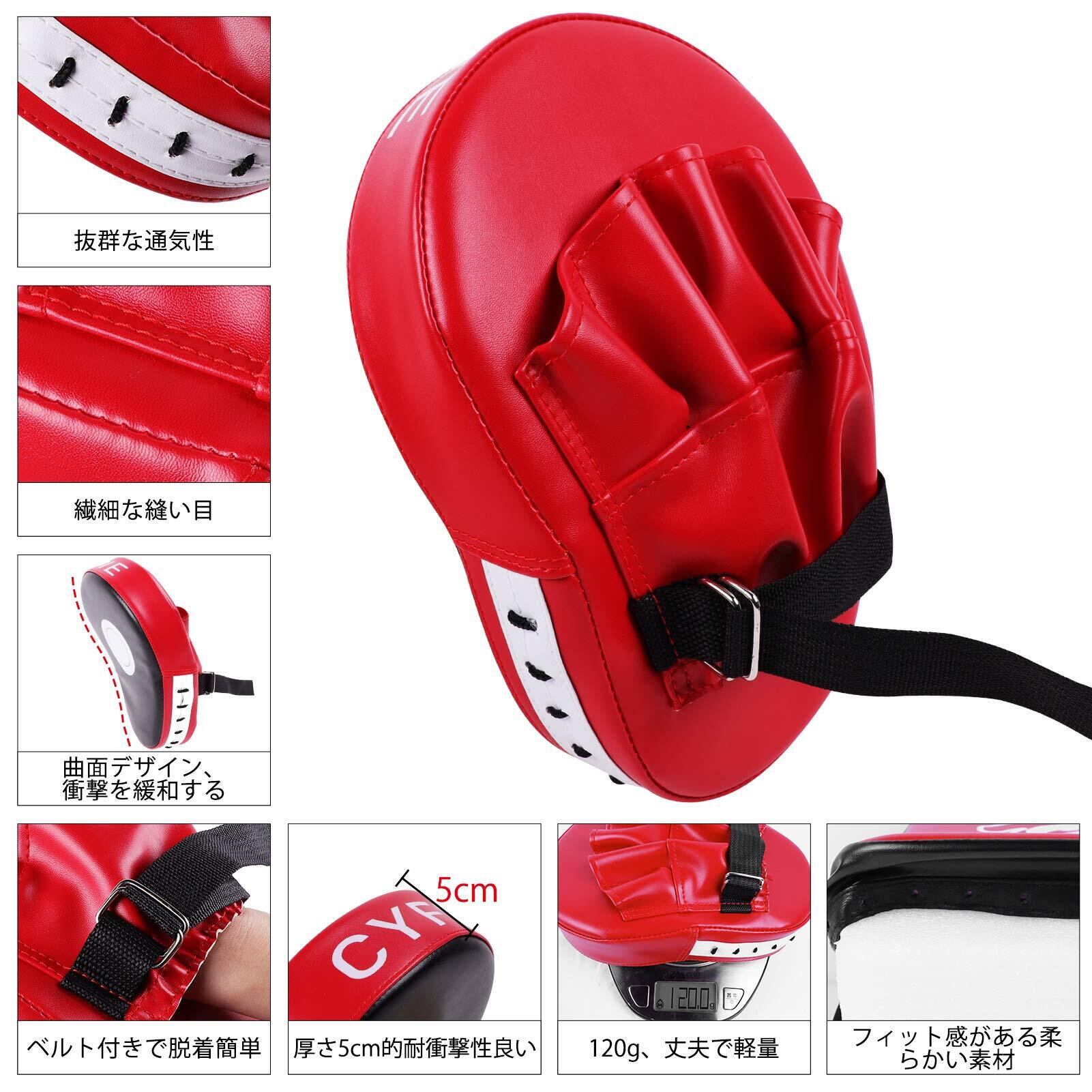 【商品詳細】 ➤サイズ:キックミット約39.5*19.5*9.5cm パンチングミット約26*19*5cm ➤重量:キックミット約360g (片側)パンチングミット120g(片側)➤材質:表面PUレザー、裏真珠スポンジ ➤セット数:4個
