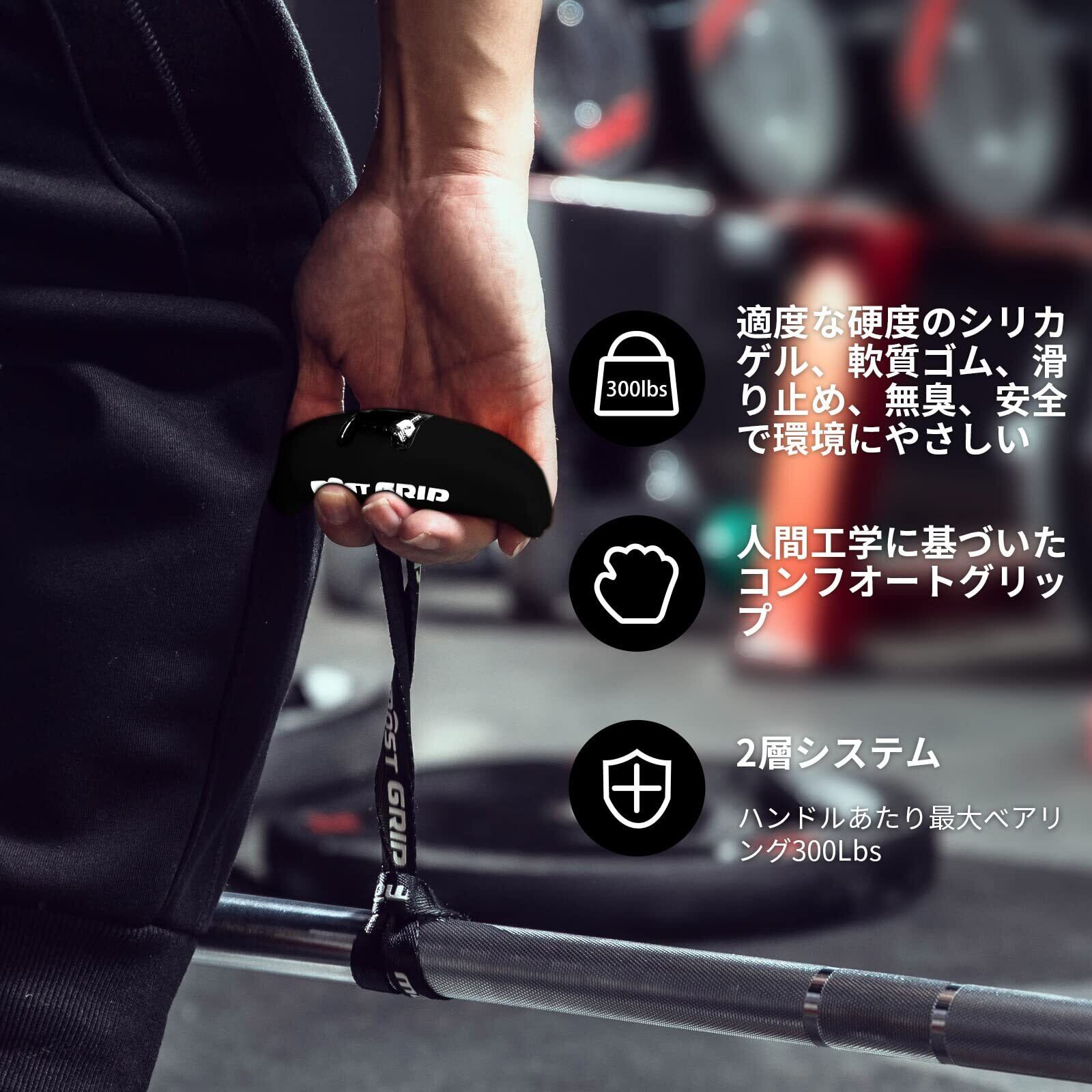 【持ちやすくデザイン】人間工学に基づいたデザイン、グリップの姿勢の変更、手を保護し、摩擦を減らすことができます。グリップ部分がゴム素材なので、プル系種目で特に気になる、掌の痛みが軽減されました!グリップが握りやすく手の負担の軽減に役立ち、トレーニングに集中できます。