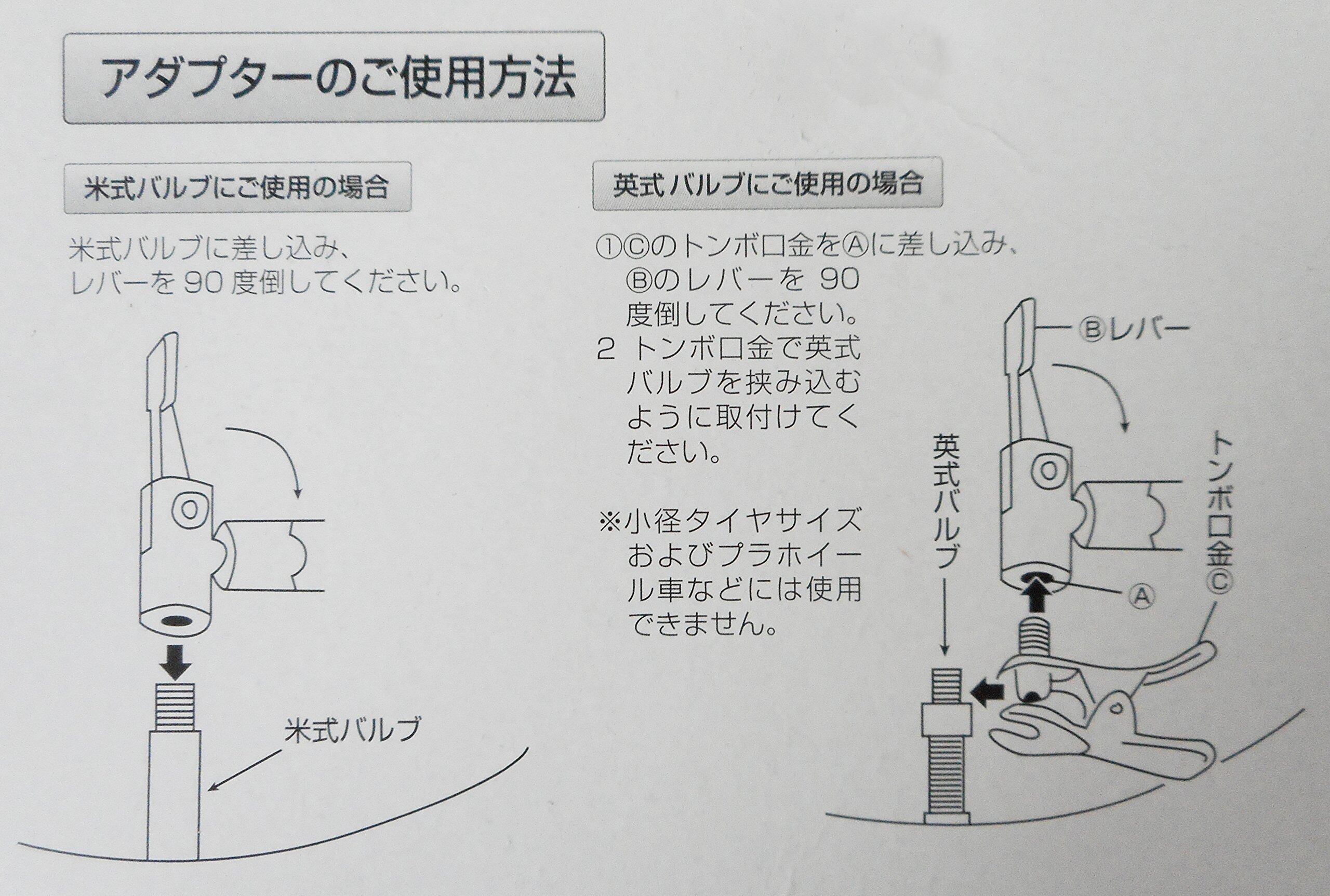 子供用などの小径タイヤやプラホイール車にはご使用出来ません