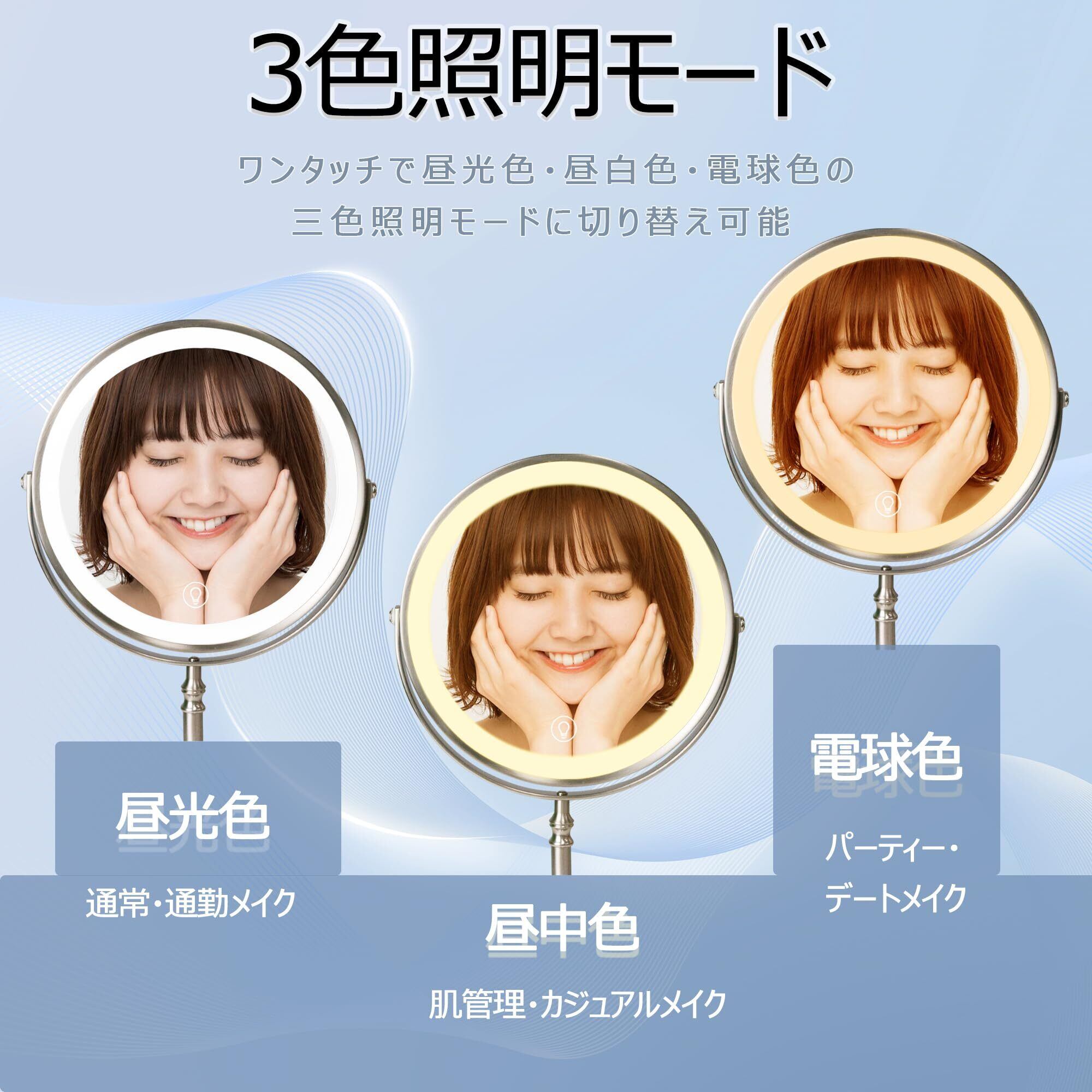 【在庫処分】AMZTOLIFE 化粧鏡 LEDライト付き 女優ミラー 10倍拡大鏡 3色調節 無段階調光 USB充電式 コードレス 360度回転 タッチ式 自然光再現 高色彩還元 鏡 卓上 スタンドミラー (シルバー) | Premium Stage