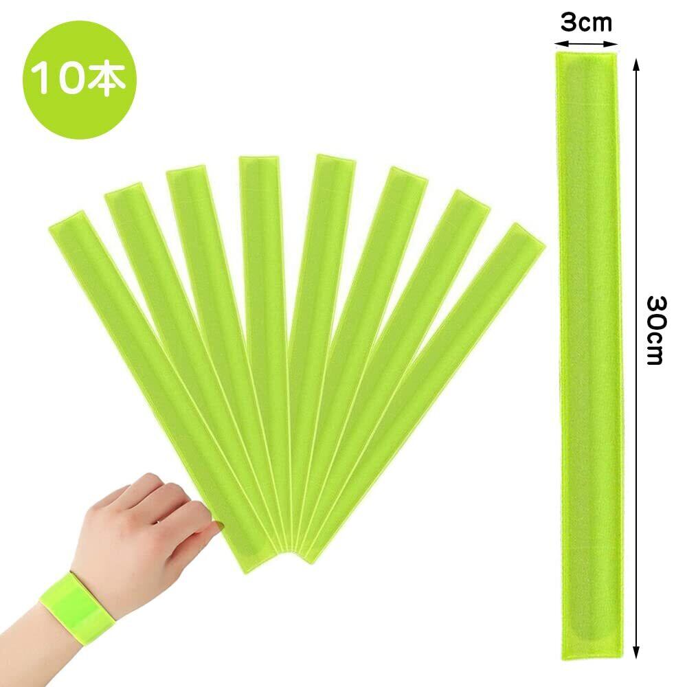 反射バンド 蛍光 10本セット反射シール スナップバンド ランニング ウオーキング 通勤通学/犬の散歩/ランニング/ジョギング/ウォーキング用 夜間反射 事故防止 高輝度 30cm*3cm