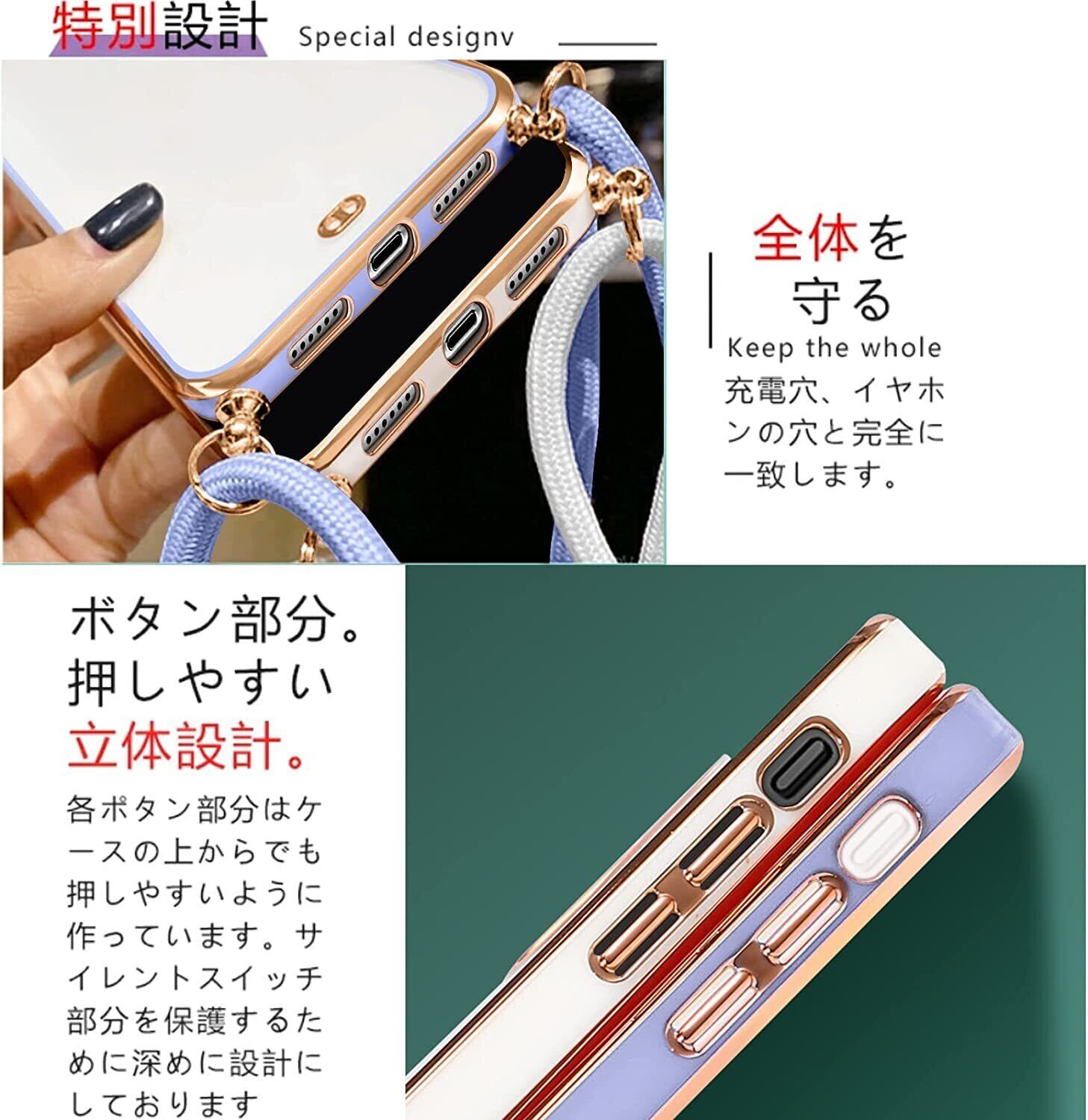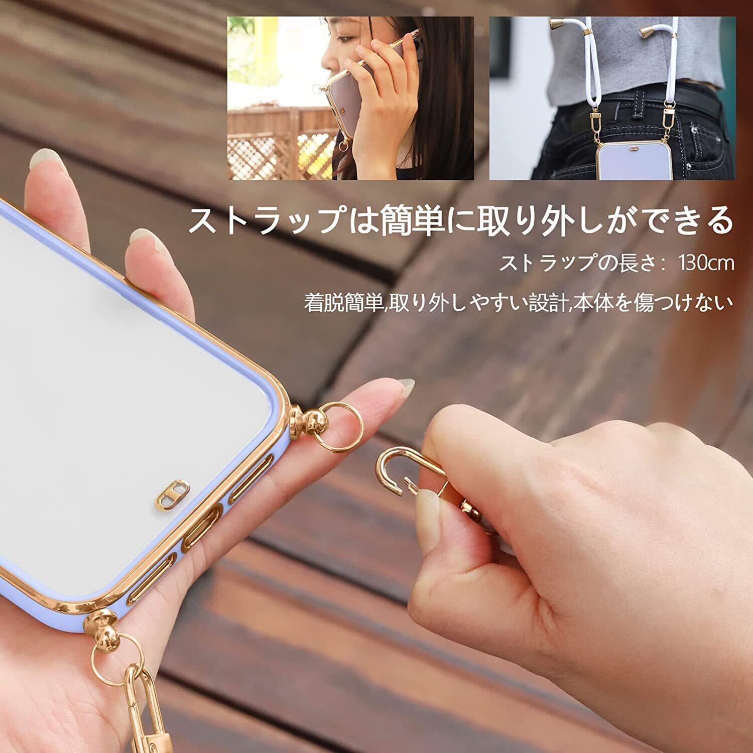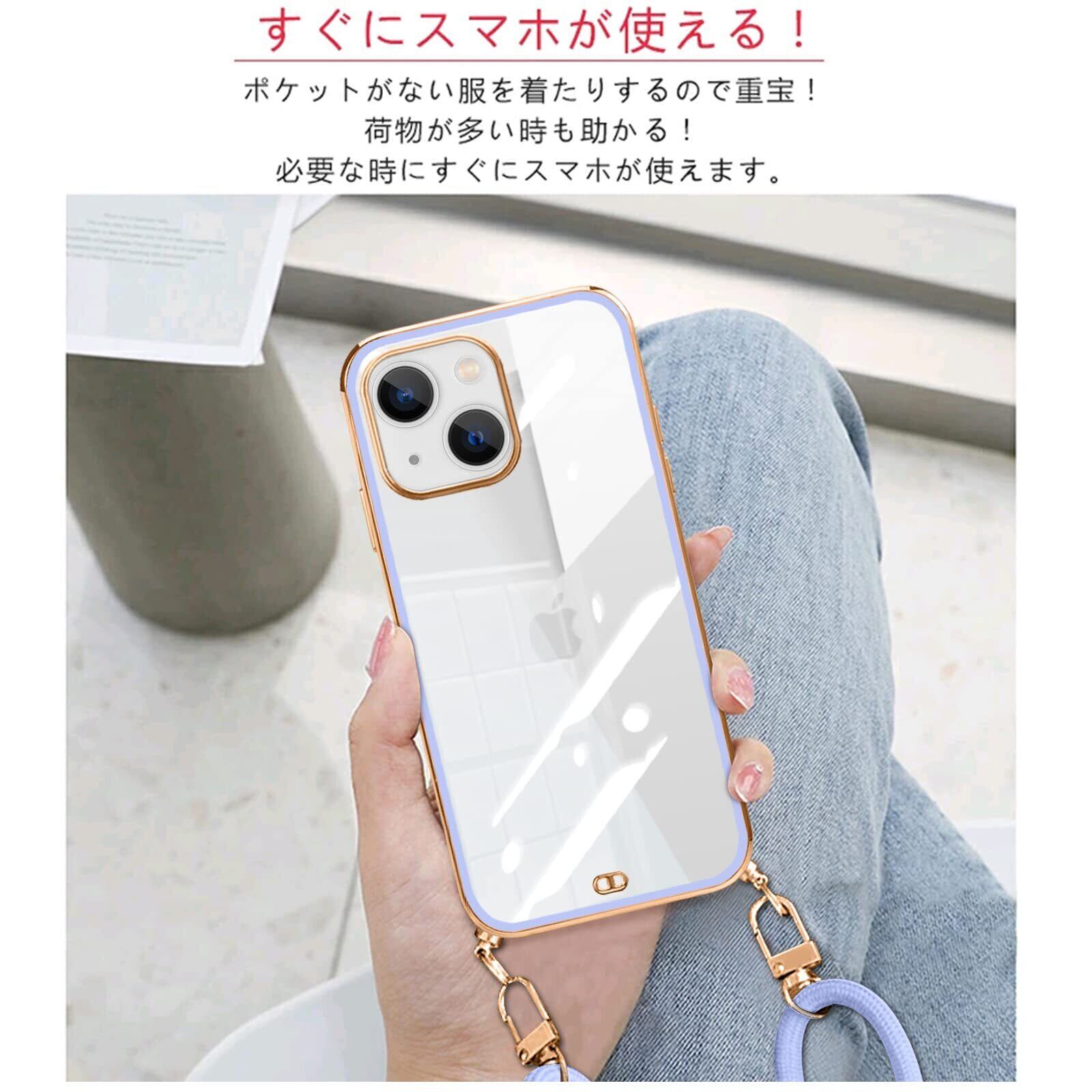 iPhone13 mini ケース ショルダー クリア いphone13 mini スマホケース カバー 肩掛け 首掛け 斜めかけケース 可愛い かわいい 韓国 透明 TPU 薄型 耐衝撃 シリコン アイフォン13mini(クローブ 紫)
