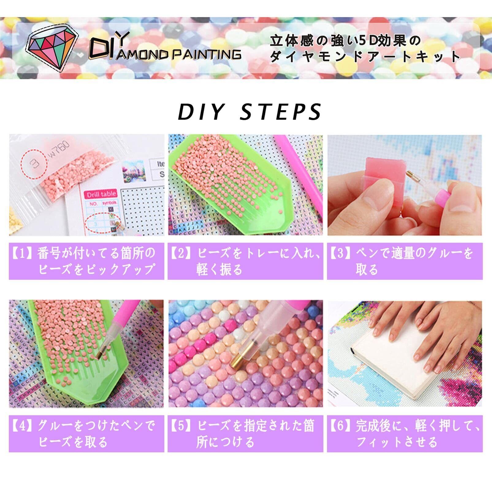 【パッケージ内容】:1枚セットの5Dダイヤモンドアート、1枚のラベルステッカー(30点)、2個のグルー、3本のダイヤモンドペン、1個のビーズトレイ、1個の調整板、30枚ビーズ収納バッグ。(ダイヤモンドビーズの不足を避けるために、ビーズの数を30%増やしました。)