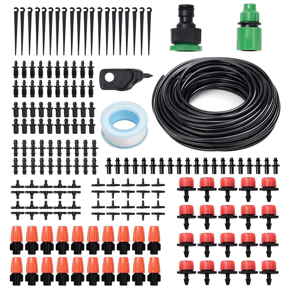 25Mホース 自動散水セット 185個セット 灌漑システム 点滴ノズル 噴霧ノズル ドリップ散水 給水システム 水やり DIY ガーデンシャワー ミスト 散水ホース 点滴灌漑 花 植物 盆栽用 家庭園芸 温室加湿 GA005